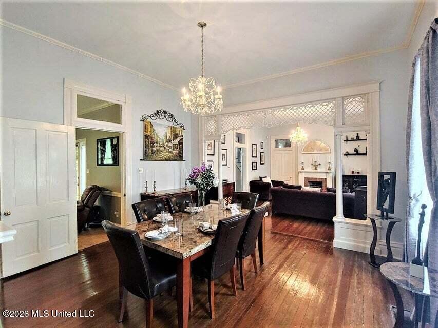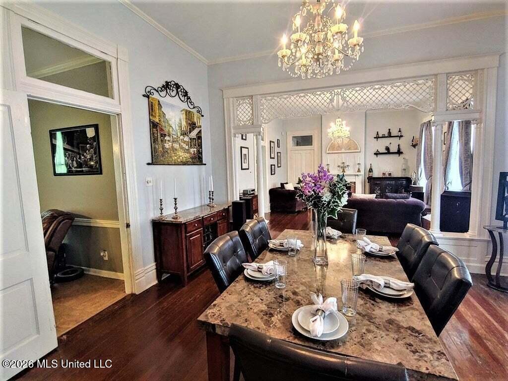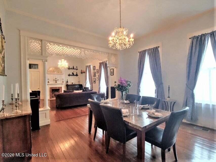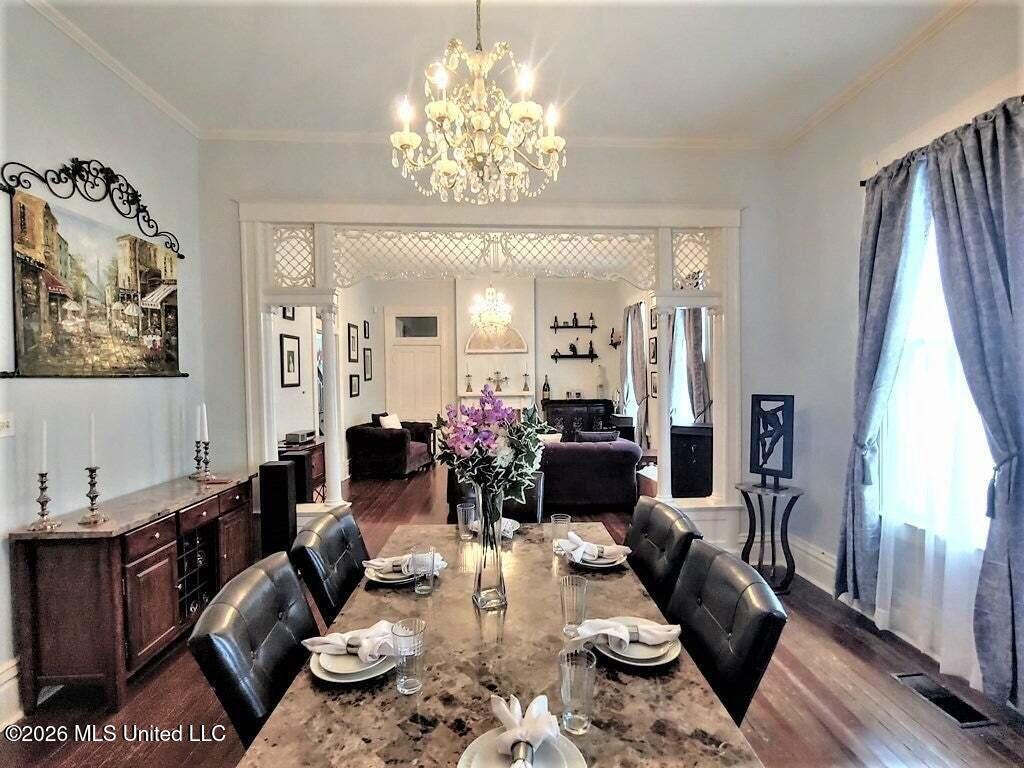 CHARMING VICTORIAN HOME IN THE HEART OF DOWNTOWN NATCHEZ. Step back in time while enjoying modern comfort in this lovely home built approximately 1900. This beautiful 2-story home offers 4 bedrooms and 2.5 baths and is full of character and classic architectural details. The exterior welcomes you with a spacious wrap-around porch supported by a beautiful verandah and classic white columns, perfect for relaxing and enjoying the charm of the neighborhood. The property sits on two spacious lots and features a 4-car covered parking area, while the front yard is enclosed by a charming white picket fence. Inside, you will find high ceilings, wood floors, and elaborate woodwork that highlights the homes historic elegance. The home features separate living and dining room, ideal for entertaining. The large kitchen includes granite countertops, breakfast bar and plenty of space for gatherings, and opens to a nice-sized family room. Just off the kitchen is a laundry and a convenient half bath. The inviting entryway showcases a beautiful staircase, creating a grand first impression. The downstairs bedroom is served by a nearby hall bath. Upstairs, you will find three additional bedrooms and a full bath, offering comfortable living space for family and guests. Located within walking distance to shopping, restaurants, the Mississippi River, and all the events that make downtown Natchez special. This home offers the perfect blend of historic charm and prime location. With so many amenities and classic details, this home truly must be toured to be fully appreciated. Square footage, year built & lot size are estimated and not guaranteed. Buyer is welcome to verify all information. Sold ''as is''. Pictures are from a previous listing.