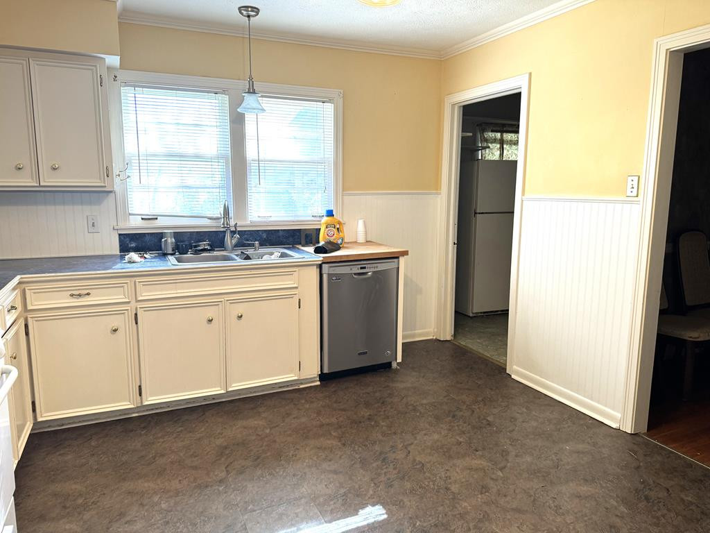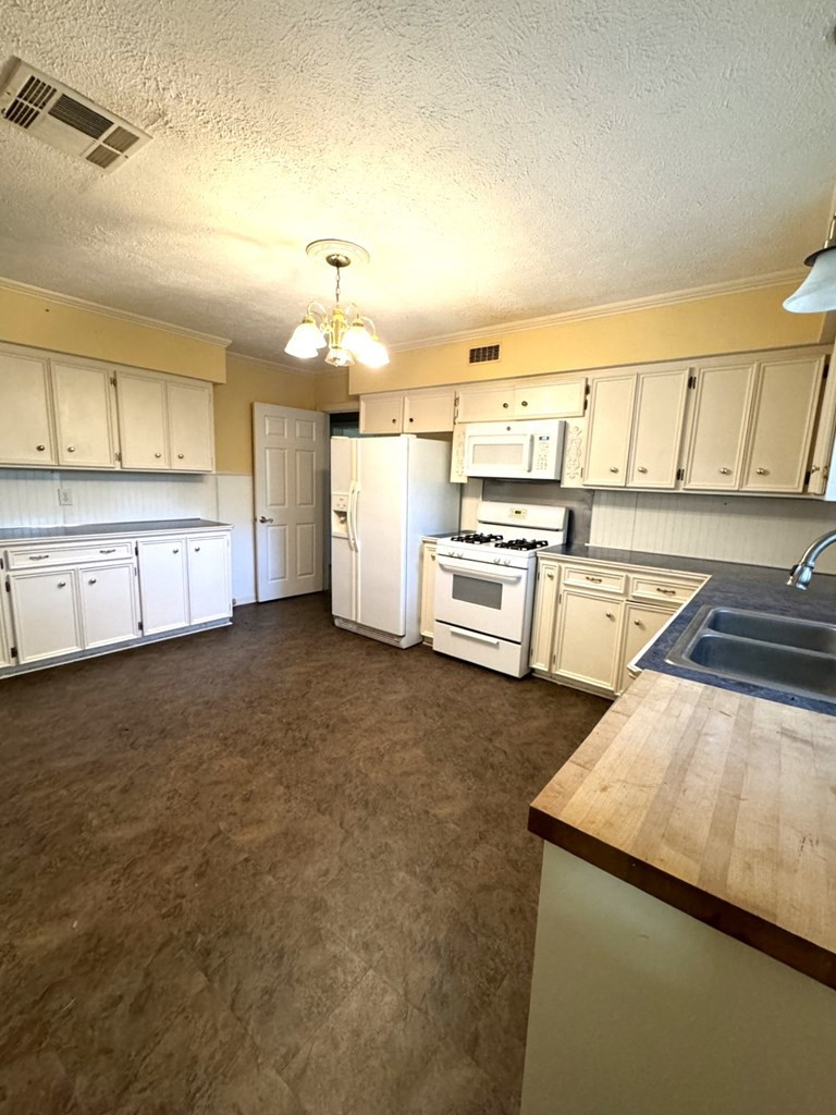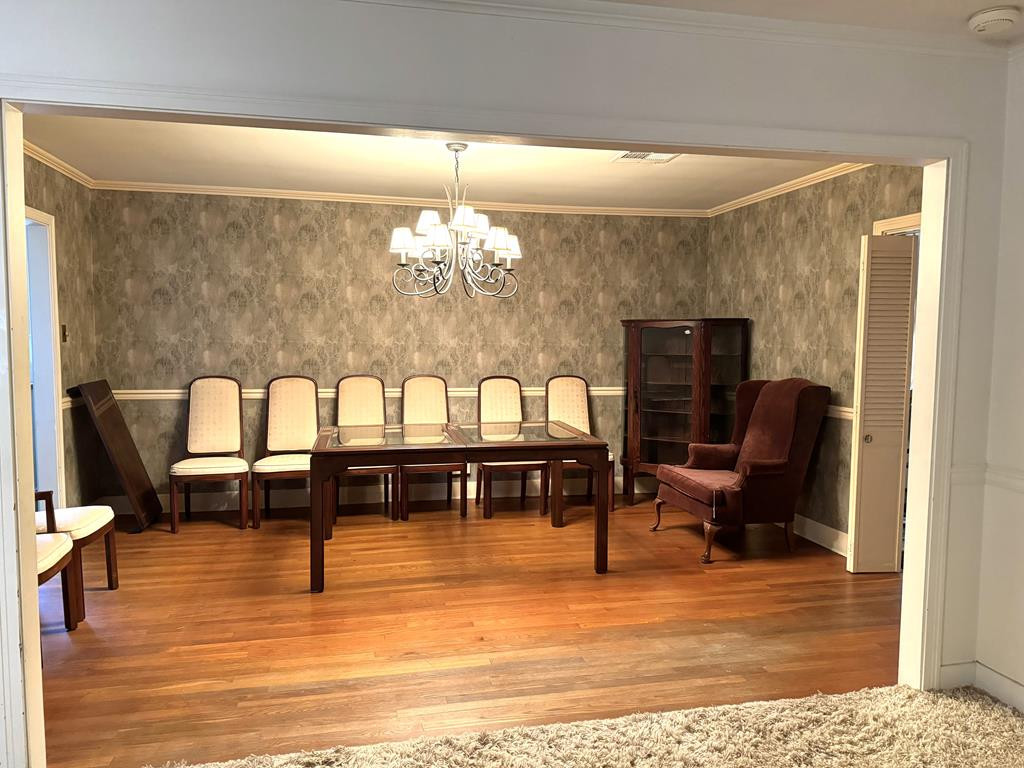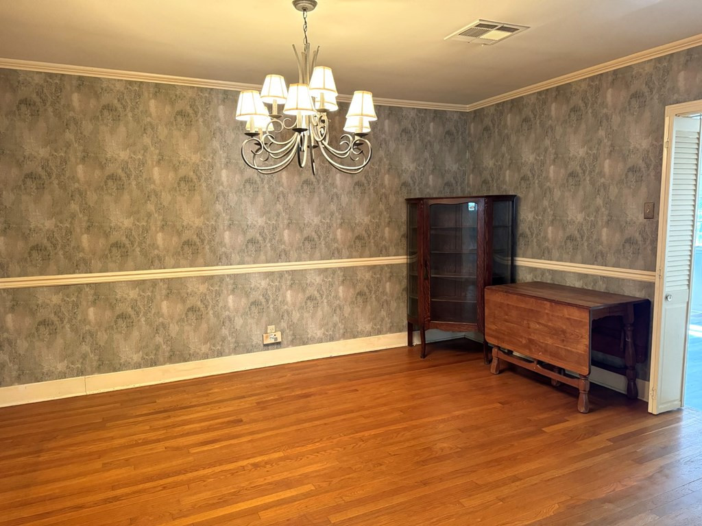 NICE BRICK 3 BEDROOM, 2 BATH HOME IN A GREAT LOCATION. CLOSE PROXIMITY TO HOSPITAL, MEDICAL OFFICES, GROCERY, CHURCHES & SCHOOLS. Large primary bedroom with double closets. Two bedrooms have built ins. Nice size kitchen with gas stove/oven, built in microwave, dishwasher & plenty of cabinets. Large den that opens to the dining room and steps down to a bonus room (with new flooring) that could be used as an office, 2nd den or game room. Lots of outdoor space featuring an inground pool with a cover, fenced back yard, covered & open deck, gutters with leaf guards & 2 car garage. All measurements are approximate & buyer is welcome to verify. Sold "as is". none