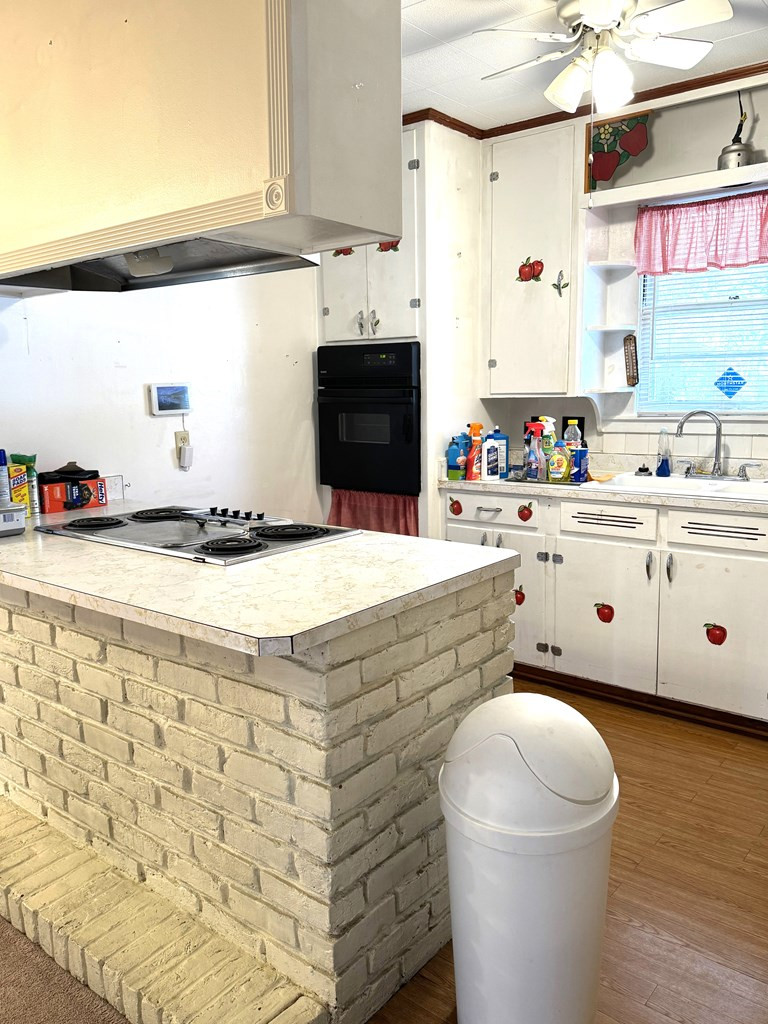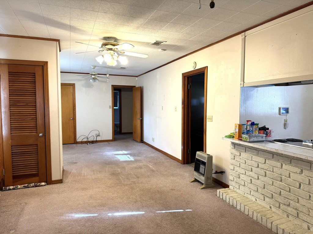 NICE, WELL MAINTAINED 2 BEDROOM, 2 BATH HOME IN BROOKLYN SUBDIVISION. Open floor plan with kitchen, dining area & den with a separate living room. The kitchen features a gas stove top in a brick island, single oven & dishwasher. Pretty white cabinets. Master bedroom has 2 closets & 2nd bedroom has built in shelves. Central heat & air & also has window units and 2 gas floor heaters. Floors are wood look a like, carpet & linoleum. Great back yard with a shed & a covered patio with a tin roof. Covered one car parking. PRICED TO SELL. SOLD "AS IS". NONE