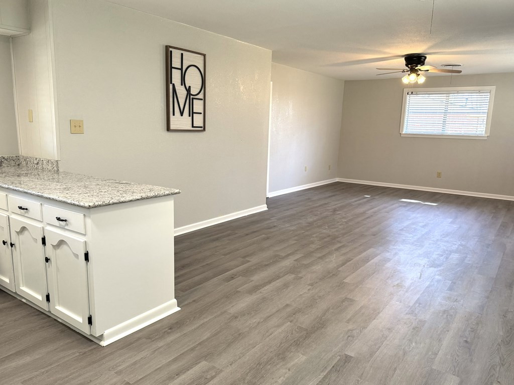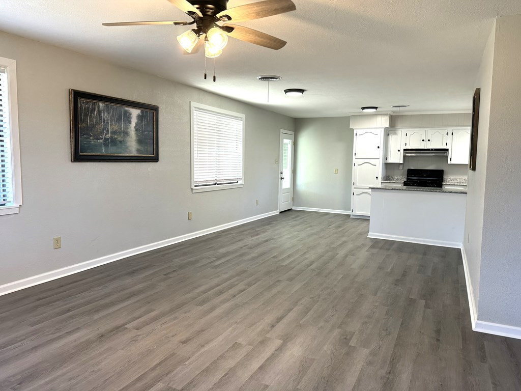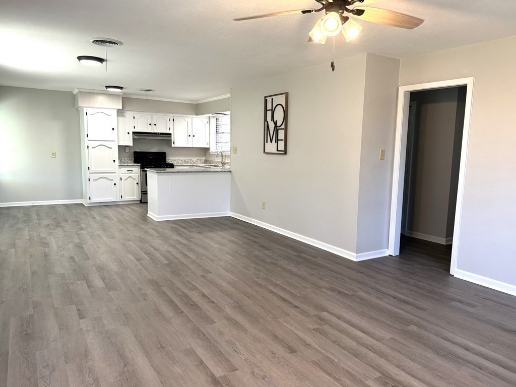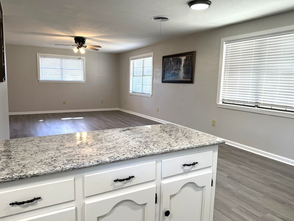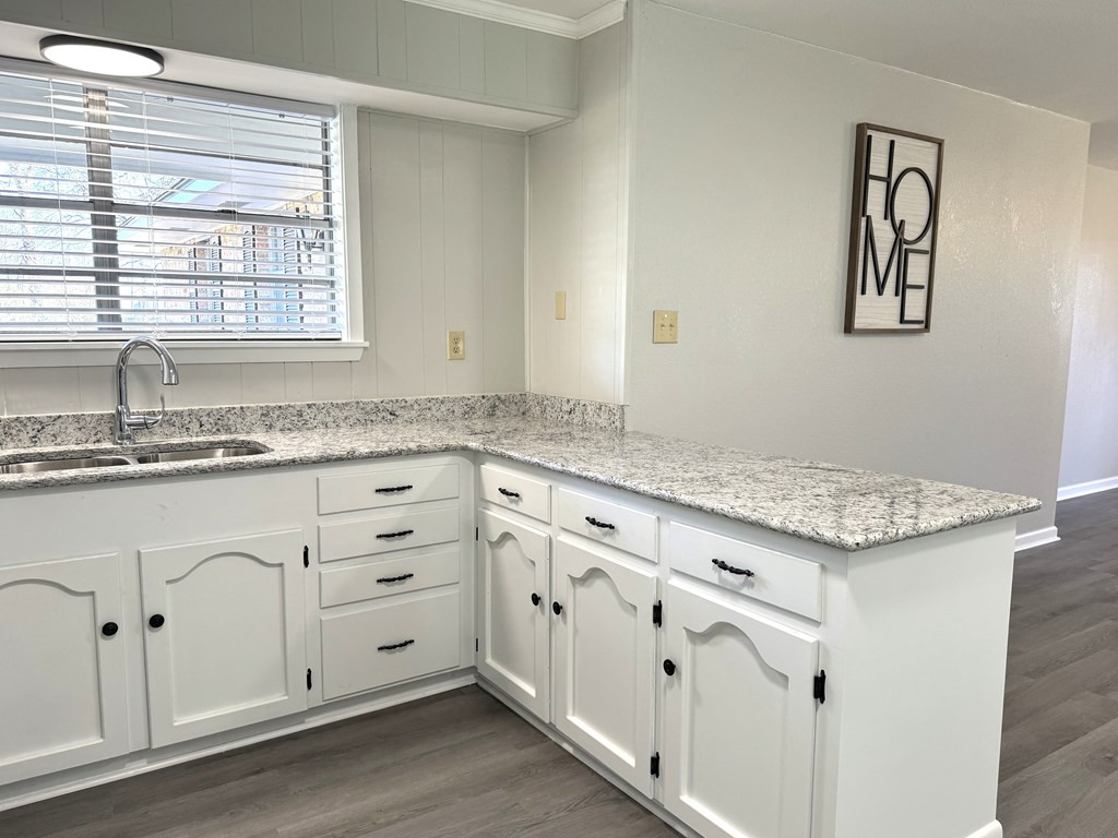 NICE BRICK 3 BEDROOM, 2 BATH HOME THAT HAS BEEN REFURBISHED IN WOODLAND SUBDIVISION. Improvements include new ac, new architectural shingle roof, new cabinets, new light fixtures & ceiling fans, new flooring, new faucets & toilets, new water heater & some plumbing update. Owner had foundation work with Olshan which has a 10 year foundation limited warranty. Open floorplan with large den & kitchen that features a stainless sink, gas stove/oven, white cabinets & granite countertops. Great curb appeal with nice flower beds, covered parking, covered patio & separate room for laundry & storage. Fenced in backyard. Year built & square footage is estimated. Buyer is welcome to verify. Call listing agent for more details. NONE