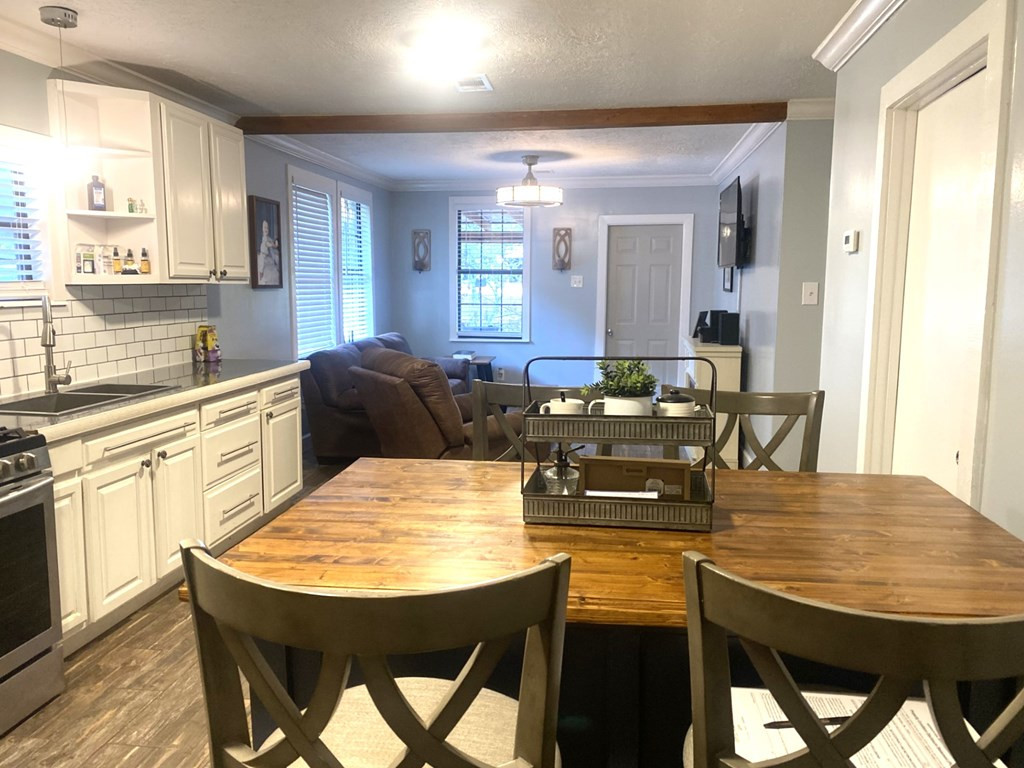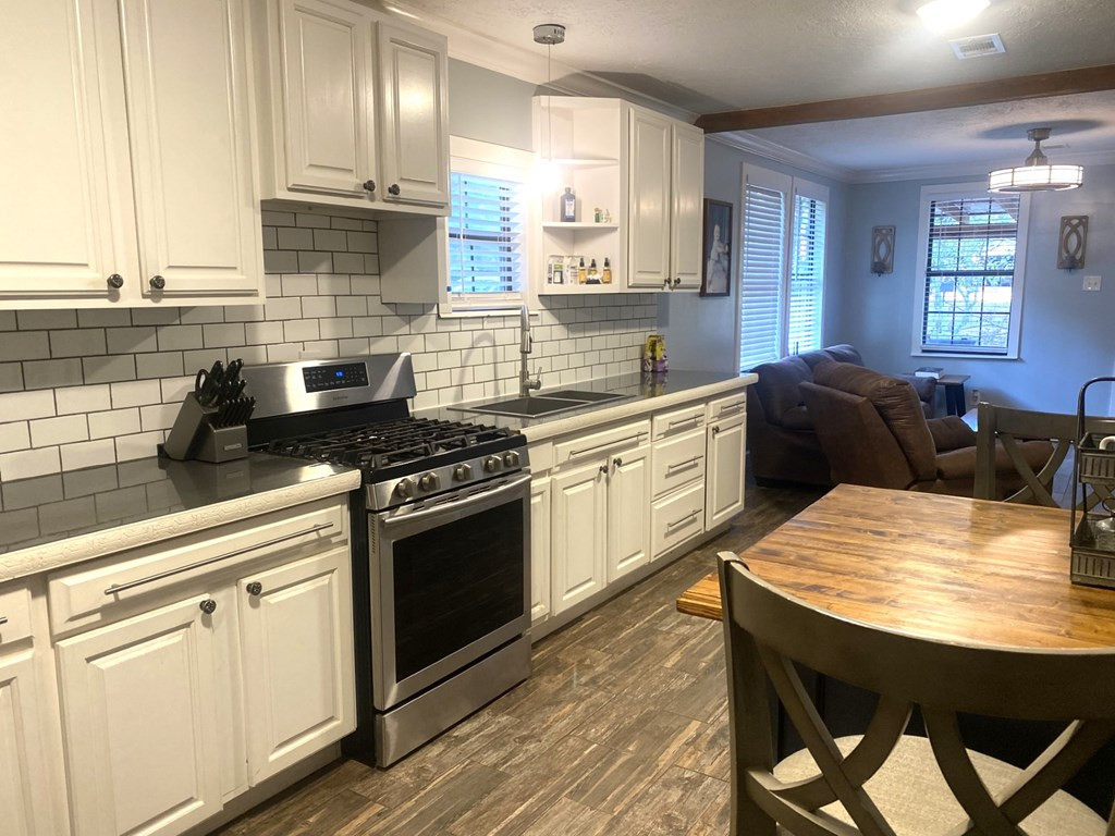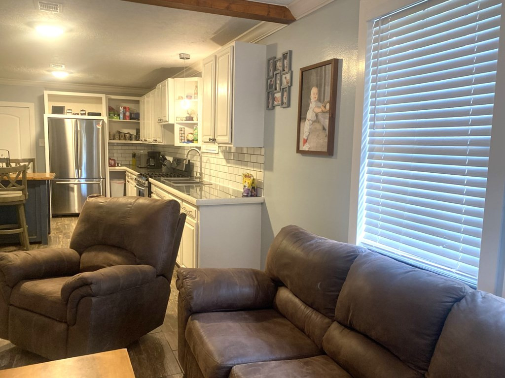 MOVE RIGHT IN THIS UPDATED 2 BEDROOM, 1 BATH HOME JUST MINUTES FROM THE CITY LIMITS. NEW CLOSETS ADDED TO BOTH BEDROOMS. ROOM TO ROAM ON A NICE TREE SHADED LOT. COVERED FRONT PORCH & NEWER METAL ROOF. SOME AMENITIES ARE AN OPEN FLOOR PLAN, CROWN MOLDING, GREAT KITCHEN WITH WHITE CABINETS, GAS STOVE/OVEN, REFRIGERATOR, STAINLESS SINK, SUBWAY BACKSPLASH & A STAINED CEILING BEAM. BONUS ROOM OFF KITCHEN WHICH SERVES AS THE LAUNDRY AND LARGE ENOUGH TO HAVE AN OFFICE OR EXERCISE AREA. CENTRAL HEAT/AIR IN THE FRONT PART & WINDOW UNIT IN THE BACK ROOM THAT HEATS & COOLS. NEW PLUMBING & ELECTRICAL IN FRONT PART OF HOUSE. GAS WATER HEATER (NATURAL GAS). ALL NEW BATH WITH TUB/SHOWER COMBO, VANITY & COMMODE. OUTSIDE IS COMPLETE WITH A SHOP/SHED WITH A LEAN TO ON FRONT & BACK OF SHED. ***SELLER WILL PAY $4000.00 OF BUYERS CLOSING COST***CALL LISTING AGENT FOR MORE INFORMATION. NONE