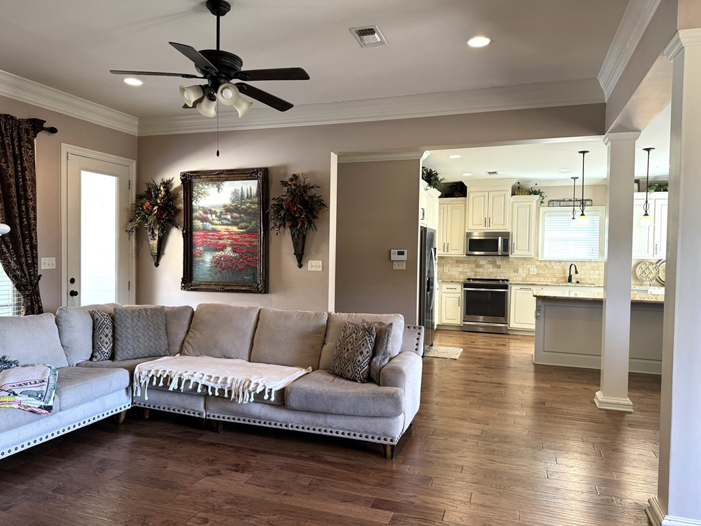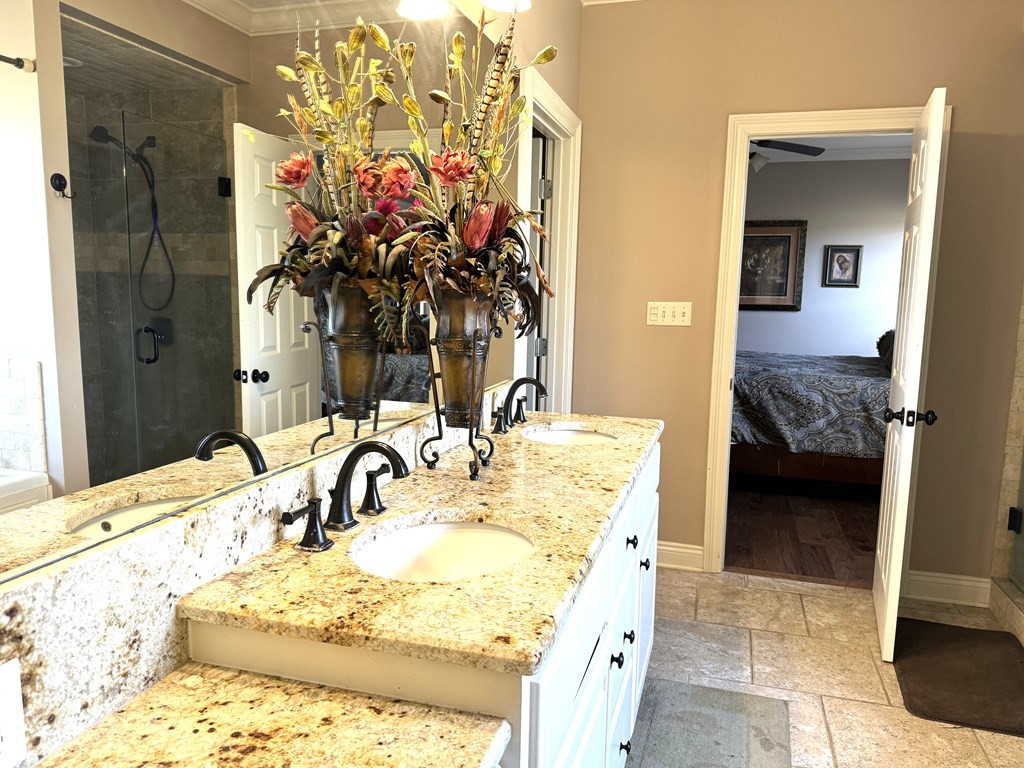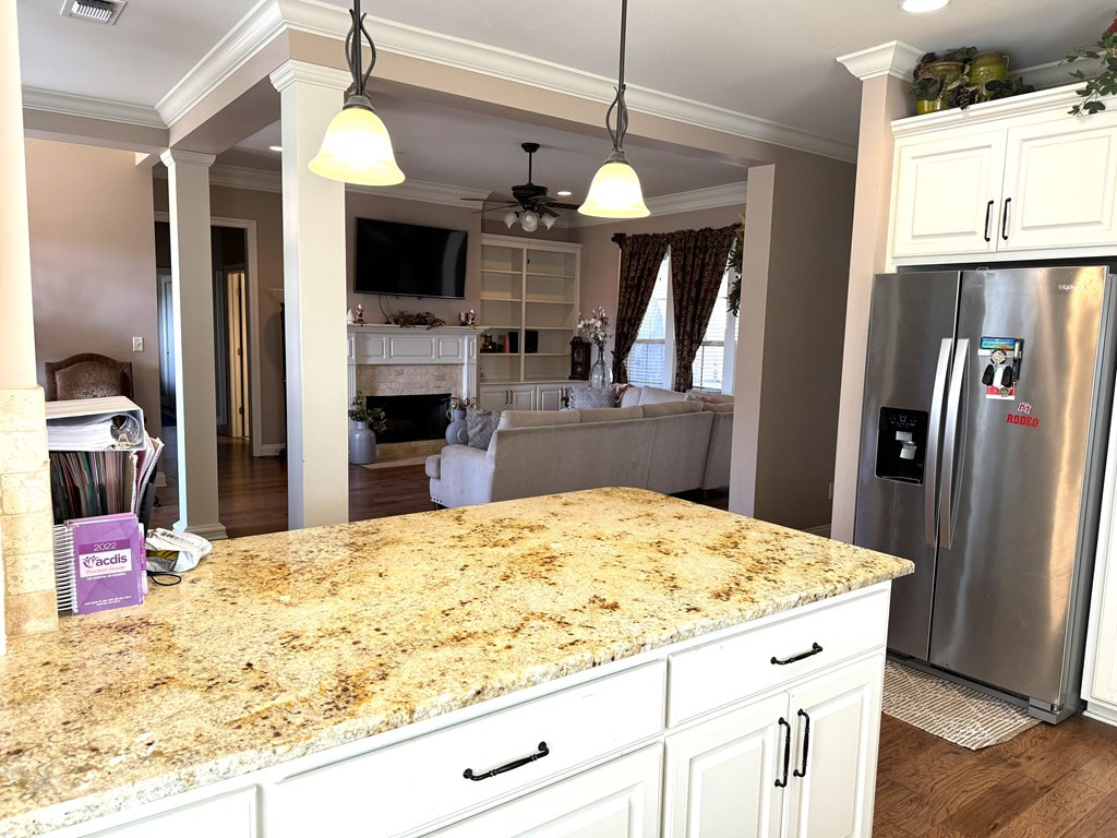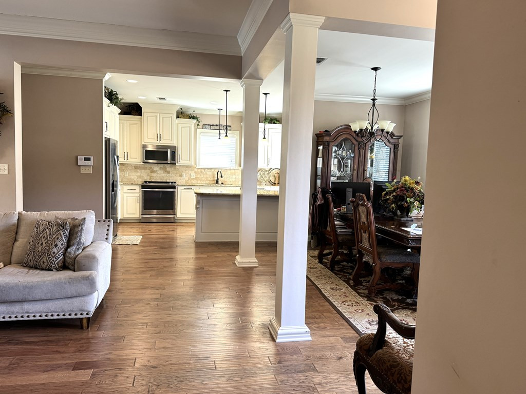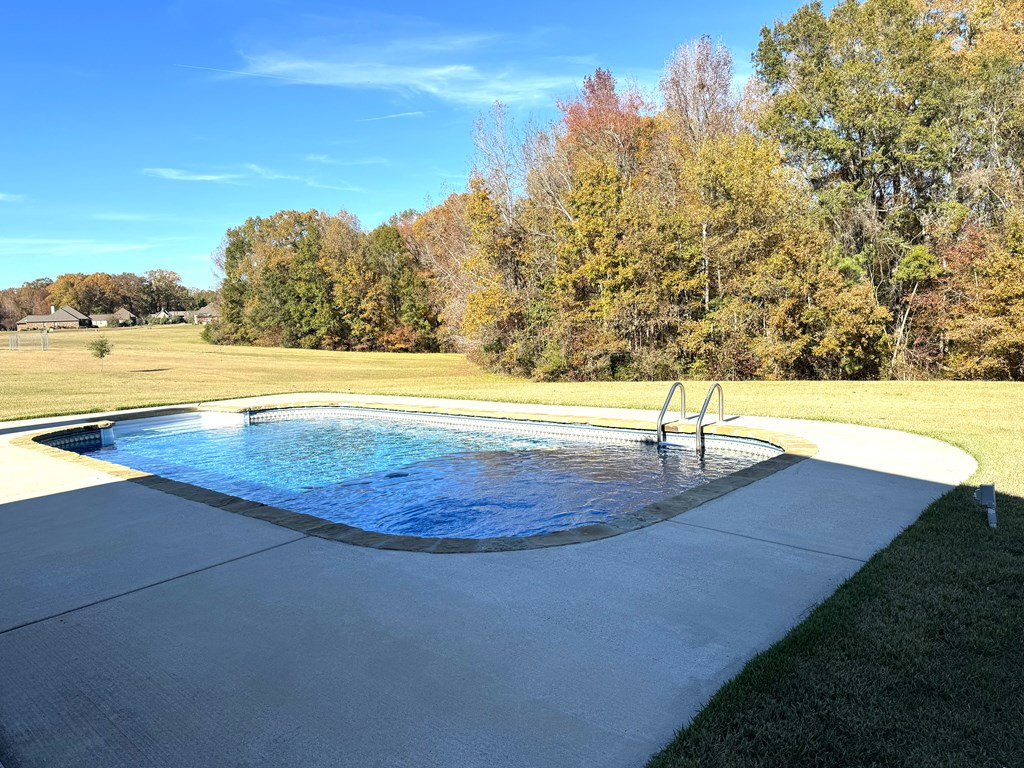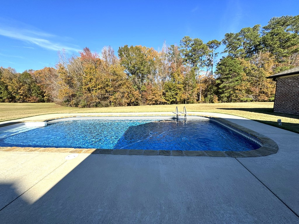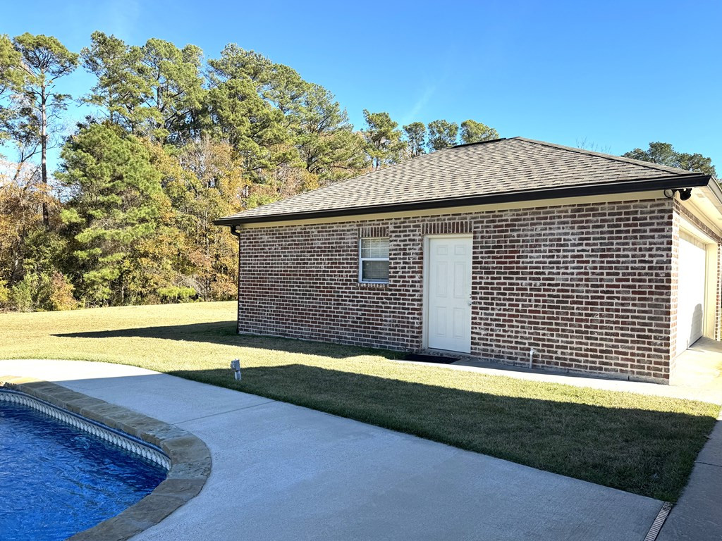 NICE BRICK HOME WITH 3 BEDROOMS & 2 BATHS IN WOODDLAND HILLS SUBDIVISION. All electric home built in 2015 +/- with high ceilings & open floor plan. The kitchen features granite countertops, breakfast bar, built in microwave, electric stove oven, garbage disposal & dishwasher. The den has a fireplace & built ins. Nice dining area complemented by interior columns that gives division with the open floor plan. Great size master bedroom with super nice master bath which has double vanities, jet tub, separate shower & walk in closet. The large laundry room has space for an extra refrigerator or freezer. You will love the outdoor space with a covered front porch, covered patio and ingroung pool with a new liner (summer 2023) that has light & fountains. The house has a 2 car garage with a 3rd bay for yard tool & equipment and also features a 2 car detached garage with a half bath that has potential for many things. Call listing agent for more information. NONE