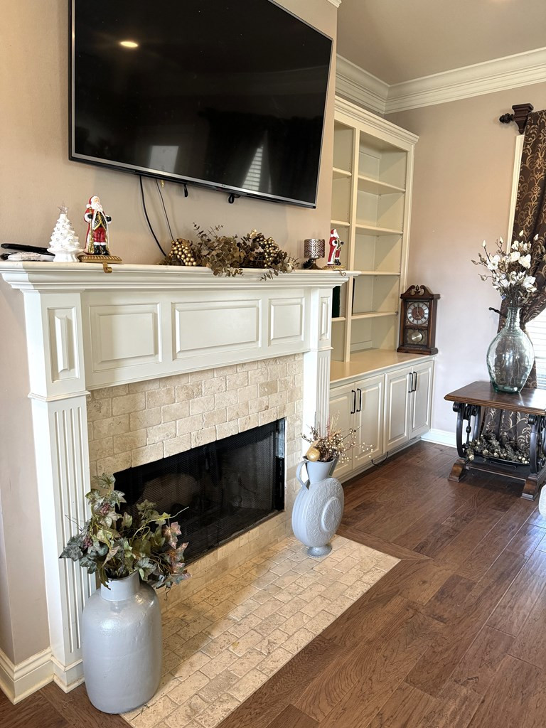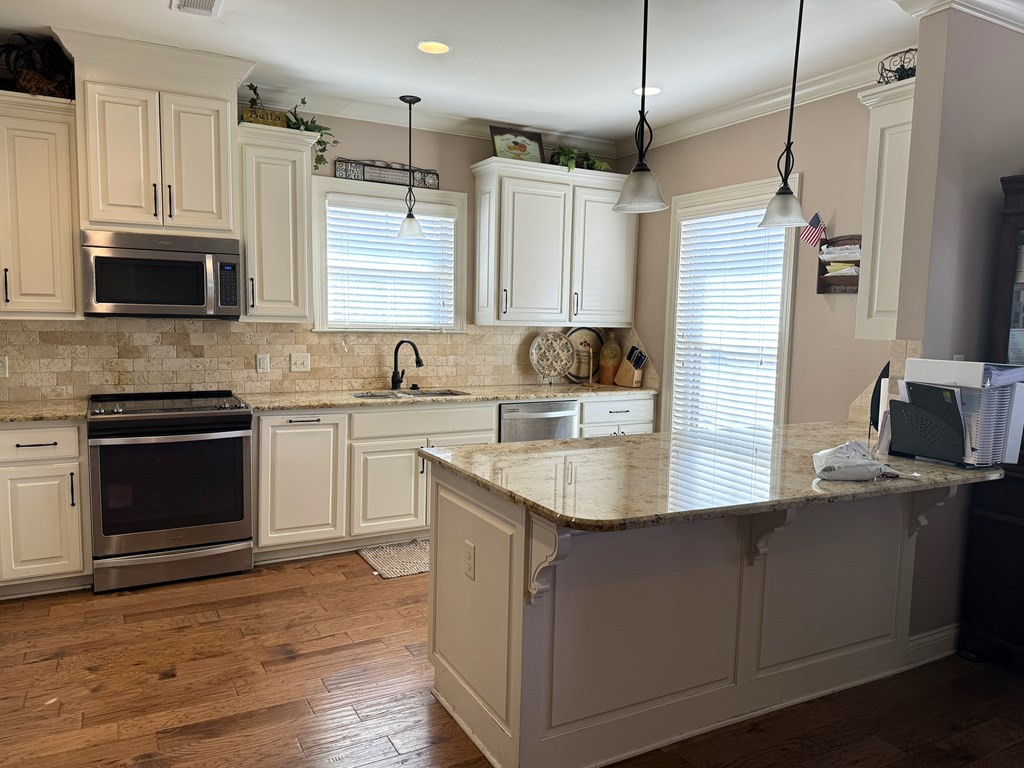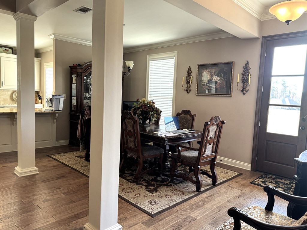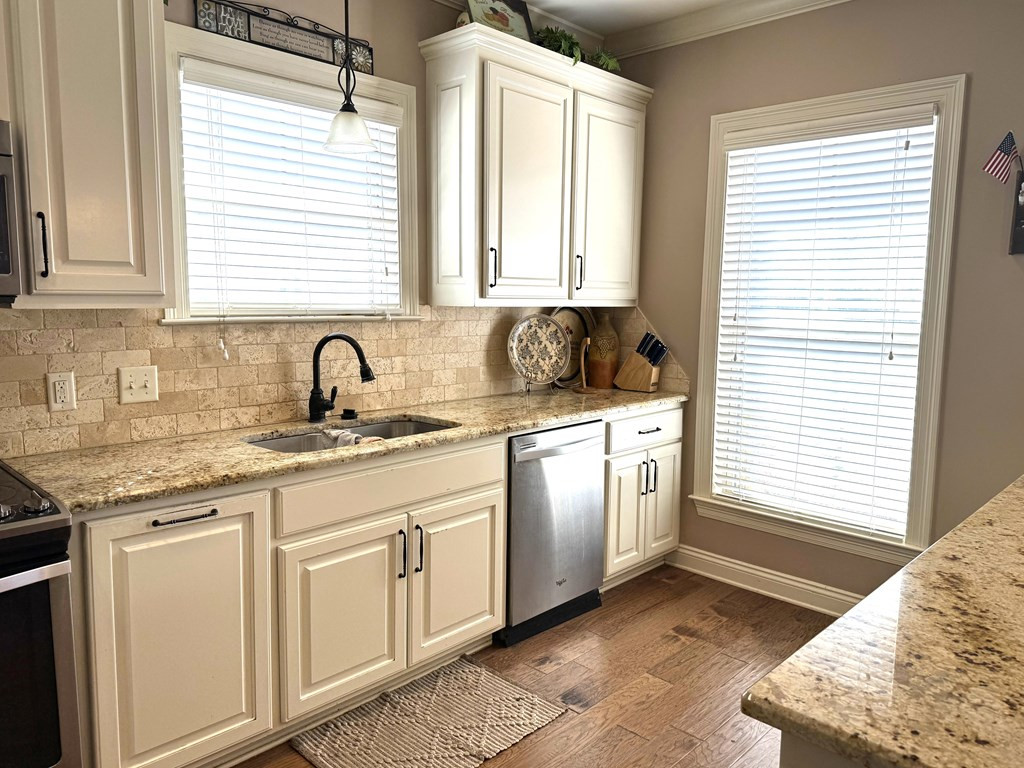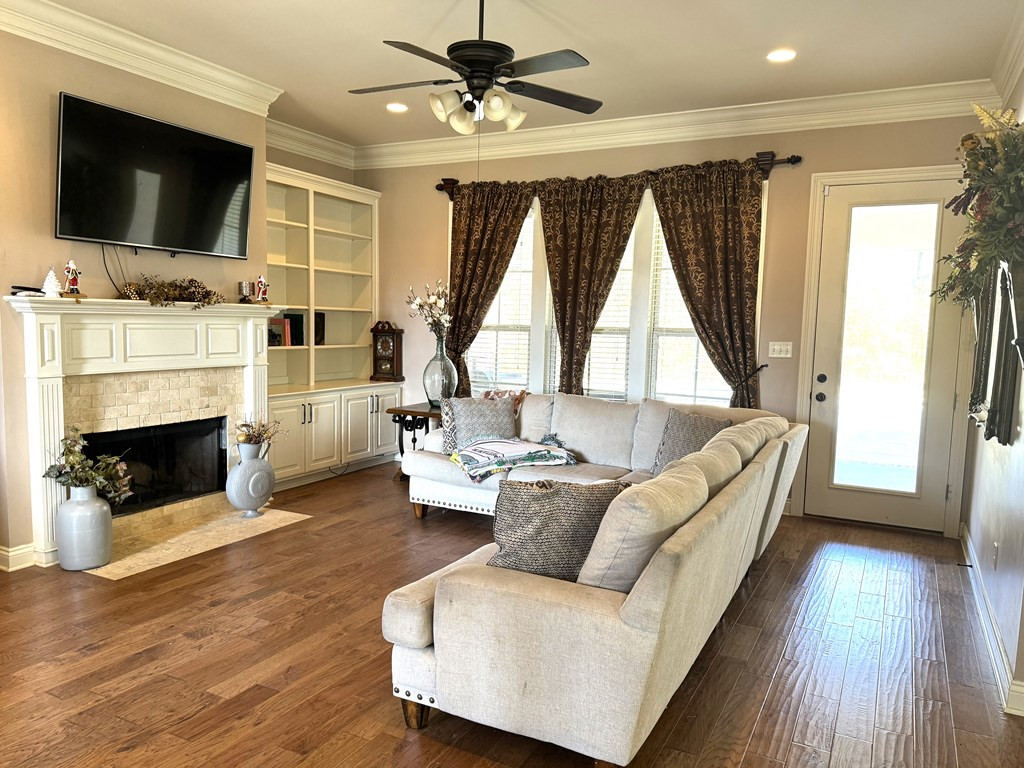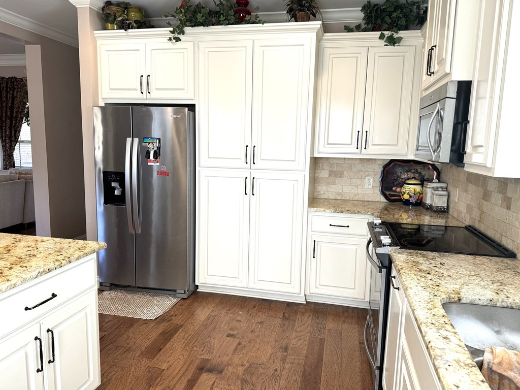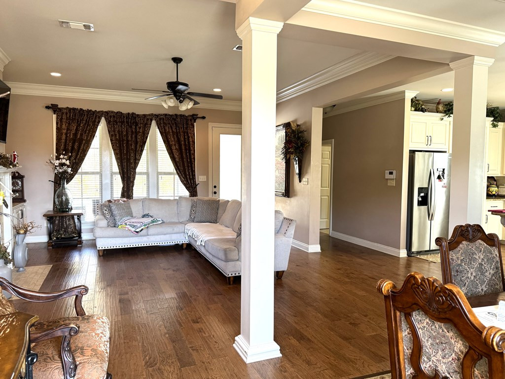 NICE BRICK HOME WITH 3 BEDROOMS & 2 BATHS IN WOODDLAND HILLS SUBDIVISION. All electric home built in 2015 +/- with high ceilings & open floor plan. The kitchen features granite countertops, breakfast bar, built in microwave, electric stove oven, garbage disposal & dishwasher. The den has a fireplace & built ins. Nice dining area complemented by interior columns that gives division with the open floor plan. Great size master bedroom with super nice master bath which has double vanities, jet tub, separate shower & walk in closet. The large laundry room has space for an extra refrigerator or freezer. You will love the outdoor space with a covered front porch, covered patio and ingroung pool with a new liner (summer 2023) that has light & fountains. The house has a 2 car garage with a 3rd bay for yard tool & equipment and also features a 2 car detached garage with a half bath that has potential for many things. Call listing agent for more information. NONE