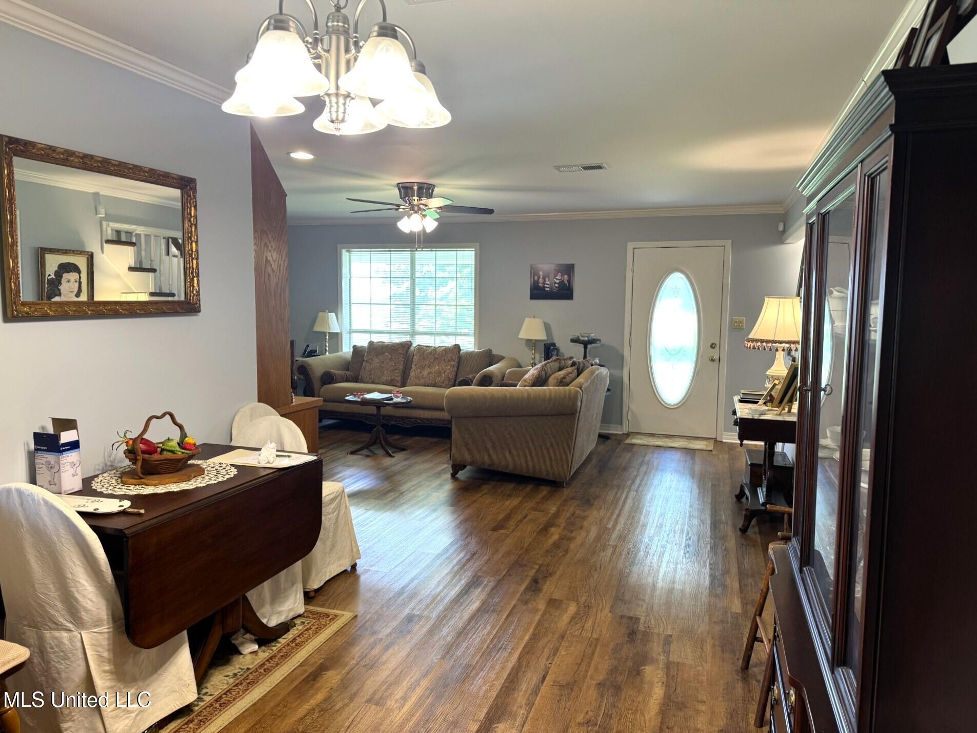 OFFERED FOR SALE IS THIS NICE HOME ON BEAUTIFUL LAKE CONCORDIA WITH 1.3 +/- ACRES. Well maintained 4 bedroom, 3 bath home with a bonus room upstairs that makes a nice 2nd den or could be a gameroom. Spacious home with nice size rooms & lots of closets & cabinets for storage. The primary bedroom & bath is on the main level & features a large walk in closet & french doors that open to a covered patio. The den has a working fireplace & built ins. The kitchen has beautiful wood cabinets, granite countertops & a breakfast area that is surrounded by a bay window that has a great view of the lake. Large laundry room with a sink, granite countertops & room for an extra freezer. House has an attached 2 car garage. Concrete driveway that extends to a workshop with two roll up doors & has electricity & half bath. Extra parking pad & a covered lean-to on back of the shop. Covered front porch & architectural shingle roof. Pier with a boat lift. This has been a one time owner. All dates & measurements are are estimated & buyers are welcome to verify.