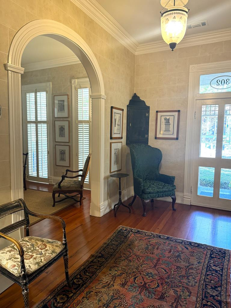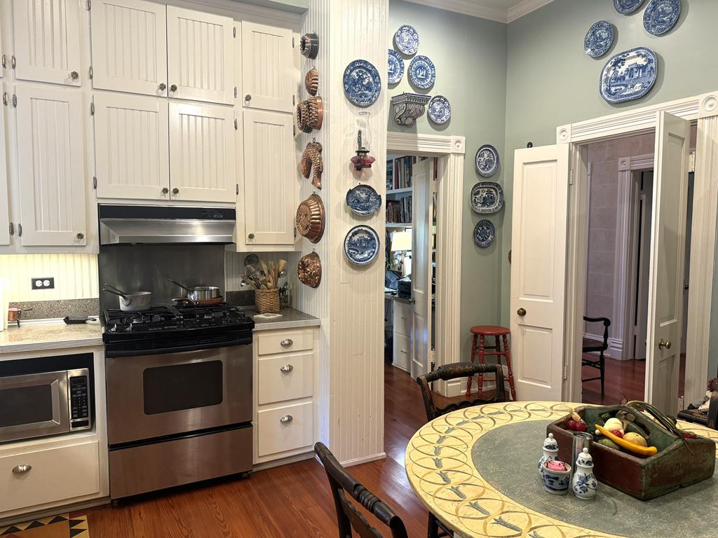 ADORABLE QUEEN ANNE COTTAGE LOCATED IN DOWNTOWN NATCHEZ, MS. WITH SO MUCH CHARACTER. This home was featured in the Natchez Classic Book (pages 152-153). Beautiful arched doorways, high ceilings, crown molding, plantation shutters & European style hand painted walls. Owner had some new wood flooring installed, made a door opening from the foyer to the dining room & updated the hall bath with shower door & sink. You will love the spacious kitchen with room for center breakfast table. Features some bead board cabinets & glass front doors. All appliances are included. Beautiful dining room with a wood burning fireplace. Updated primary bath which included built in cabinets. Stacked washer & dryer was previously in bath & moved to the basement which could be buyers choice. Built in office/computer area. Awesome landscaped yard with private fenced backyard & screened back porch. Off street parking & covered front porch. Records show age of house is 1927, however, is believed to be 1890's. NONE