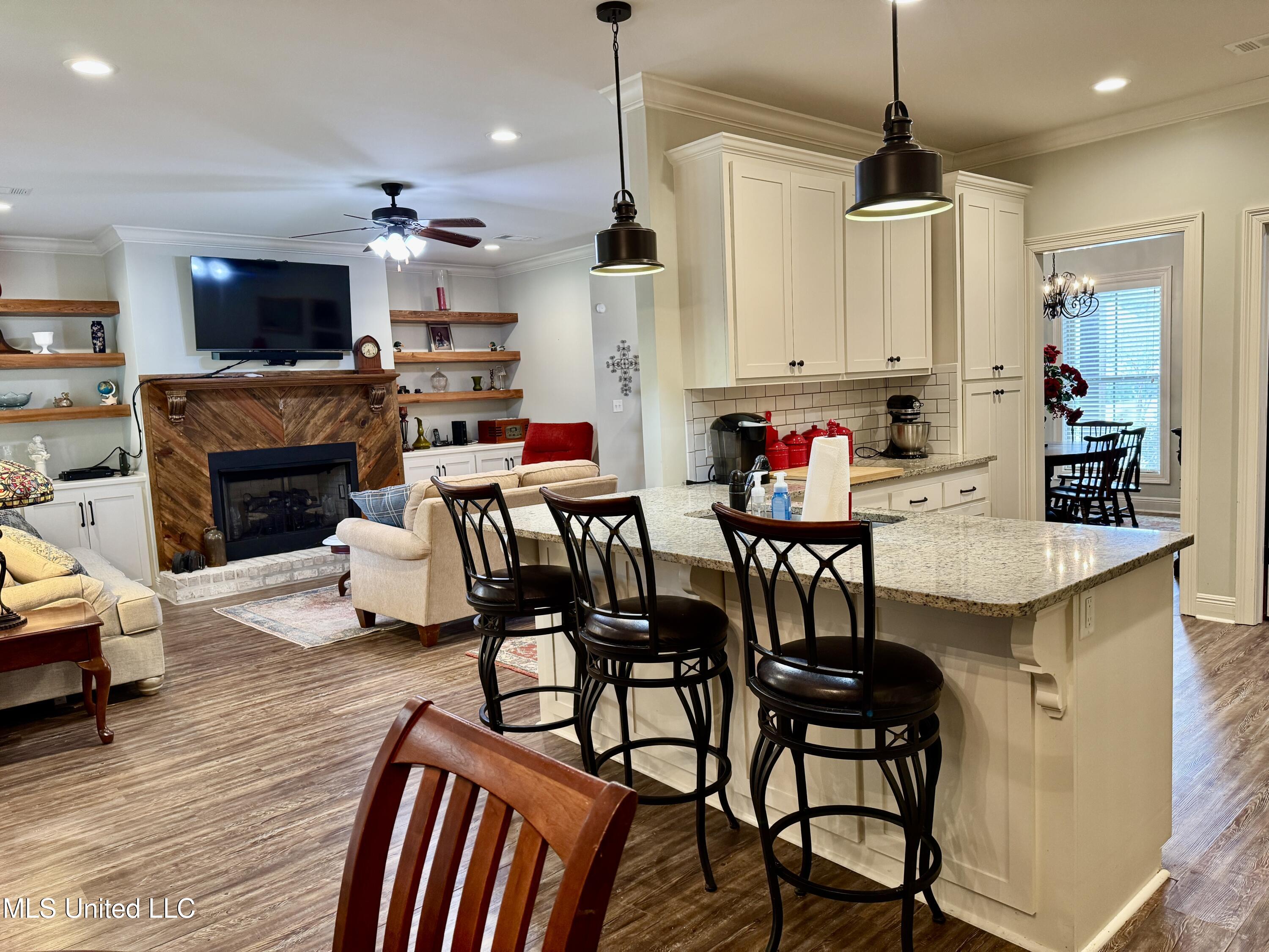 READY FOR NEW OWNERS IS THIS NICE 3 BEDROOM, 2 BATH HOME BUILT IN 2020 IN ONE OF THE NEWEST SUBDIVISIONS SOUTH OF TOWN. You will love the open floor plan with a dining room, den with gas log fireplace accented by beautiful stained wood & built ins. The kitchen is very functional which includes all the appliances, breakfast bar, granite countertops with subway backsplash, pendulum lights, pantry & nice white cabinets. Also features a nice size breakfast room. The primary bedroom & bath is separate from the other bedrooms & has a tub & separate shower with handicap features. Two vanity areas & large walk in closet with shelves. Two extra bedrooms have access to a nice bath with a tub/ shower combination. Other amenities include high ceilings, recessed lights, crown molding & ceiling fans. The exterior has a lot to offer as a built in generator, fenced back yard, garden area, gutters, covered front porch & back patio, two car garage with a utility room & architectural shingle roof. This home is located in the county with city amenities & just right outside the city limits with close proximity to hospital, shopping, restaurants & just minutes from downtown. All measurements are approximate & buyer is welcome to verify.