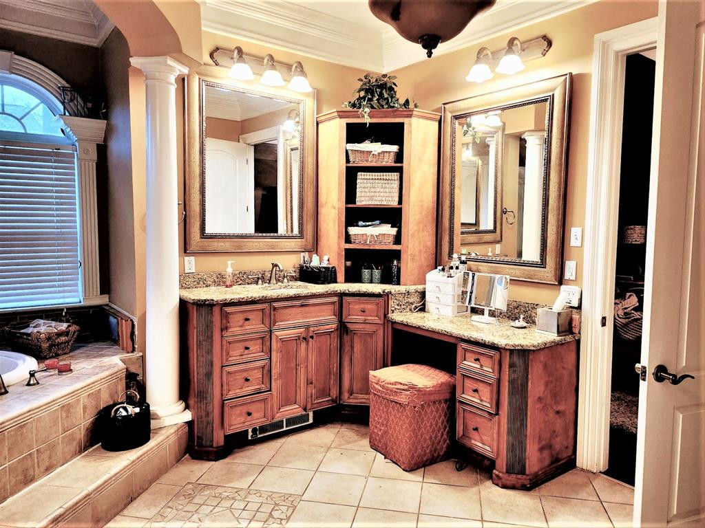 MOVE RIGHT IN THIS SPACIOUS HOME ON A CORNER LOT IN BEAU PRE' COUNTRY CLUB. Custom home with all the extras. Fresh paint with neutral colors. Inviting entry with a beautiful staircase. The main level has a large master suite with a gas log fireplace & sitting area, An awesome master bath & large walk in closet with built ins. Also featured is a dining room, study/office with built in desk, den with wet bar & fireplace, high ceilings, open kitchen which is sure to please the cook with 2 dishwashers, 2 sinks, gas stove top, double ovens, island & built in refrigerator. Also included is a wine refrigerator, pot & pan drawers, cabinets with roll out shelving, spice drawer, granite countertops & walk in pantry with custom built roll out shelving & baskets. Great view from the breakfast room overlooking the gorgeous backyard with a pergola & screened in cooking area. Upstairs has a movie theatre room, sewing room, gameroom workout/office #2. Must see!! CALL LISITNG AGENT! NONE