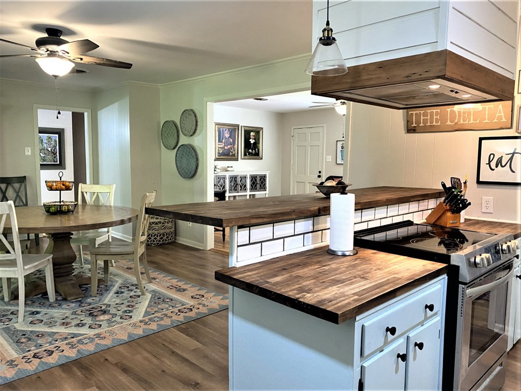 UPDATED HOME WITH LOTS OF CHARM. YOU WILL LOVE THE NEW LOOK OF THIS NICE BRICK 3 BEDROM 2 BATH HOME IN FOREST LAWN SUBDIVISION. GREAT KITCHEN WITH A BREAKFAST BAR, WOOD COUNTERTOPS, ELECTRIC STOVE OVEN, BUILT INS & SPACIOUS PANTRY SPACE. NICE FLOORING & PAINT COLORS THROUGHOUT. FRENCH DOORS OPEN TO A LARGE COVERED PATIO WITH STORAGE AREA & FENCED BACKYARD. TWO CAR COVERED PARKING. SELLER IS A LICENSED REALTOR IN MS. CALL LISTING AGENT FOR MORE INFORMATION. NONE