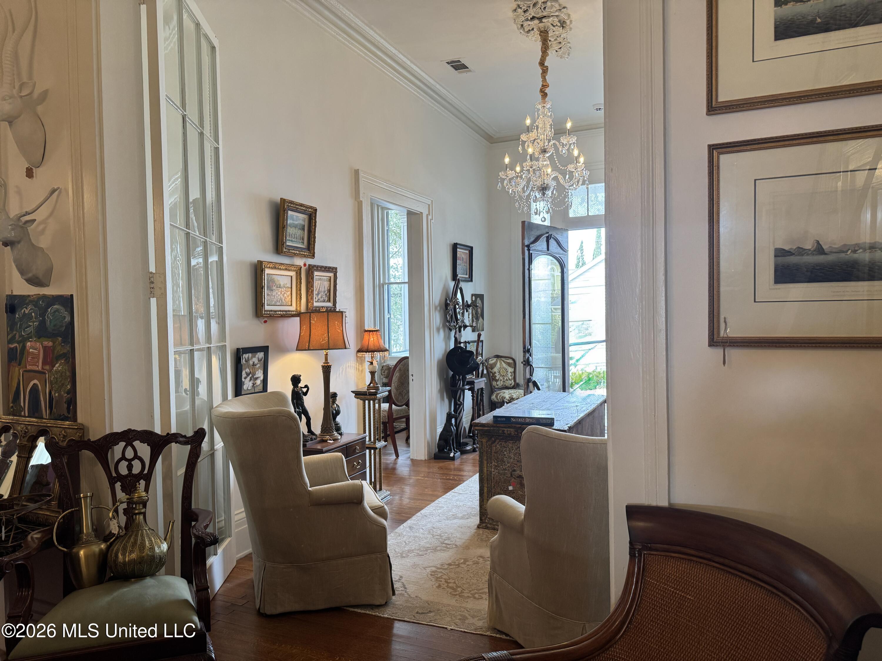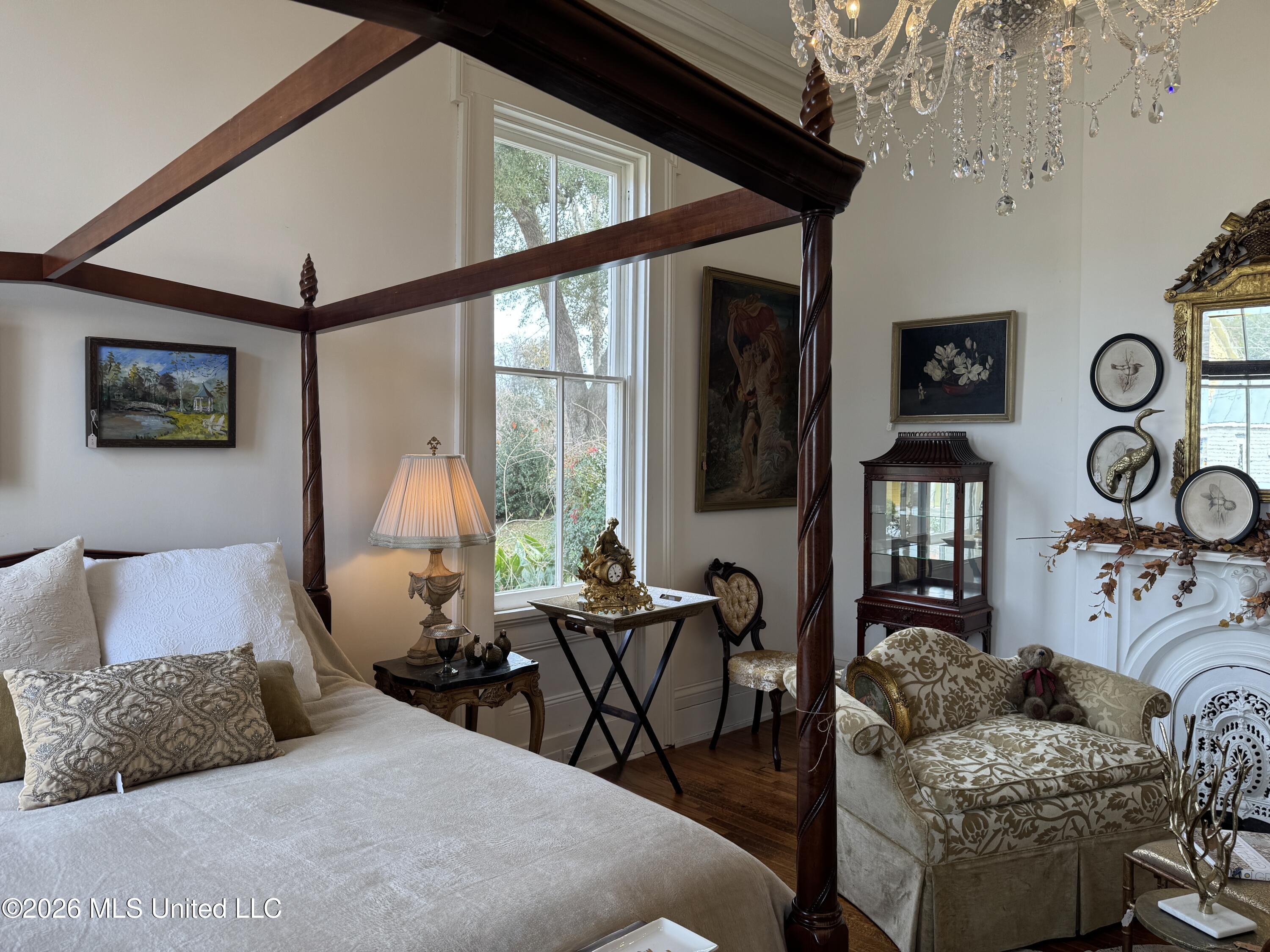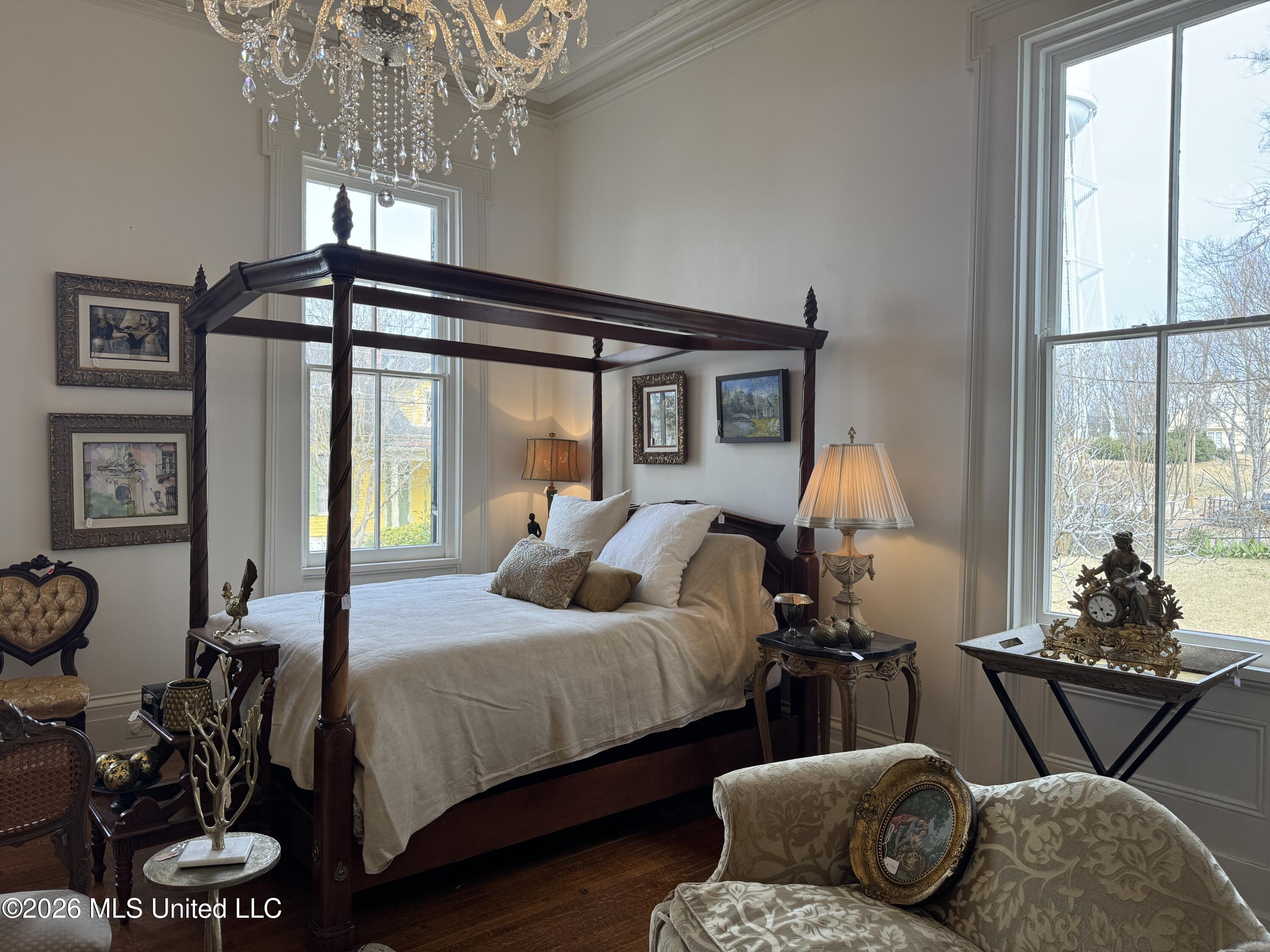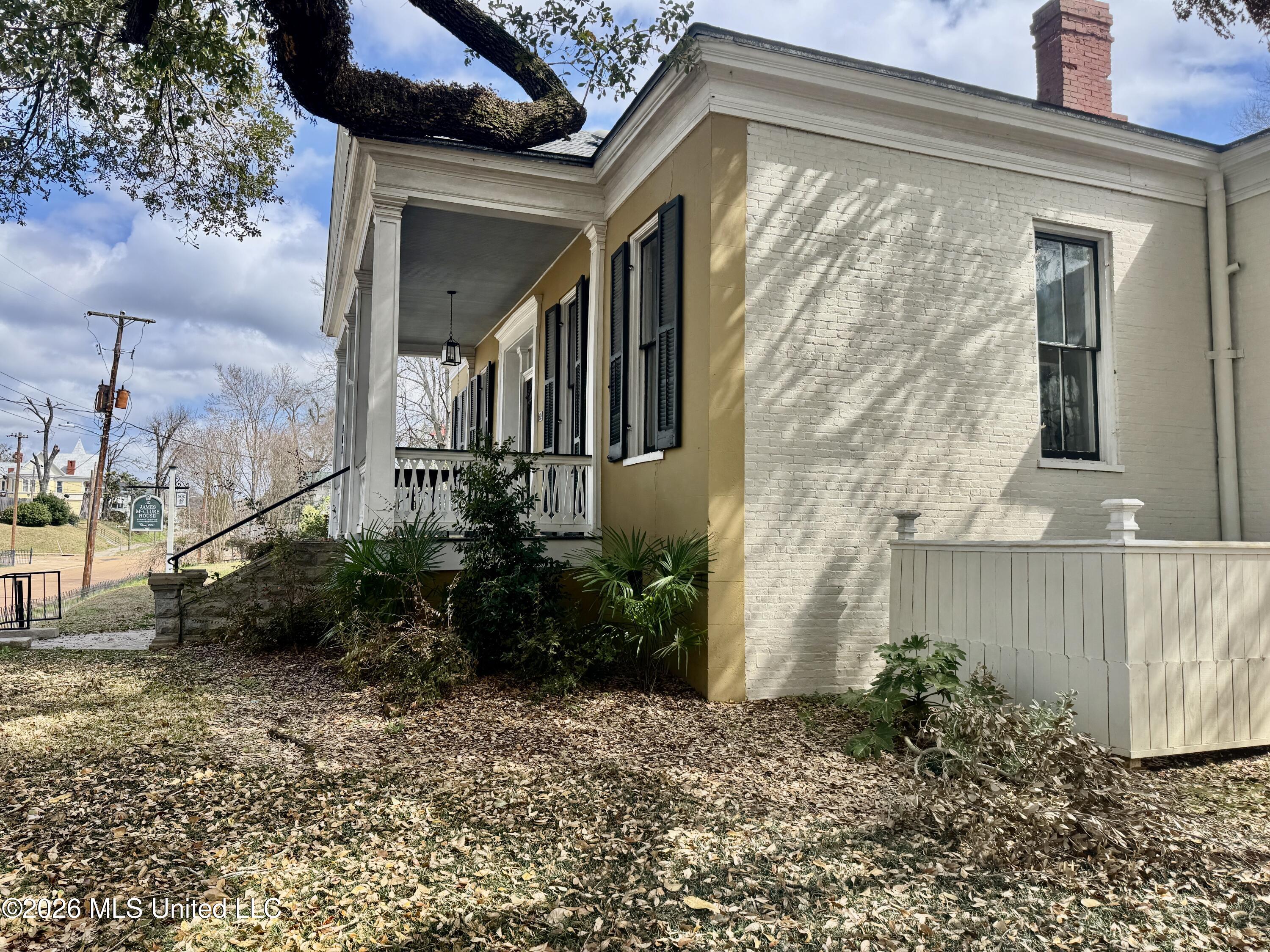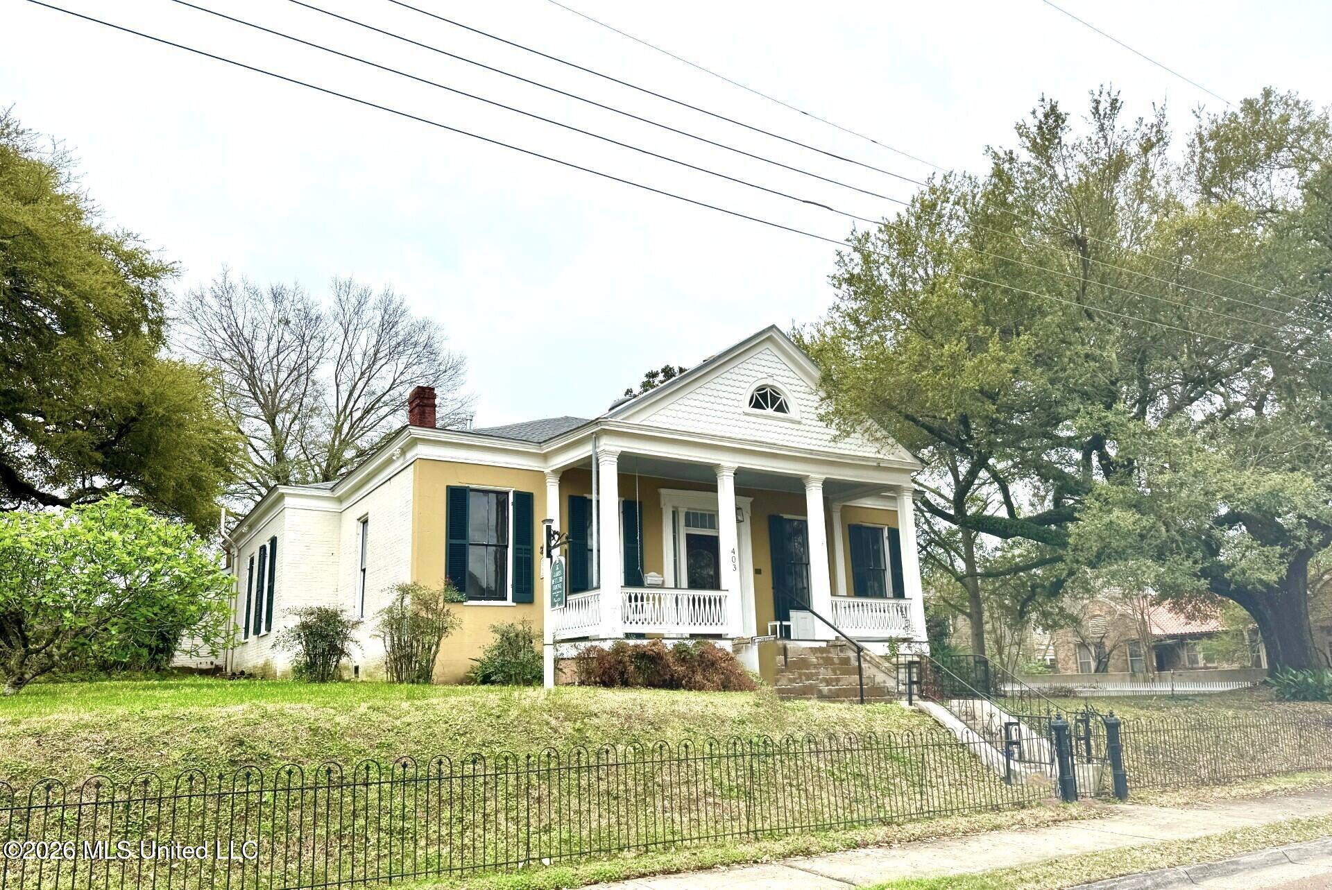 Step back in time while enjoying modern comforts in the beautifully renovated historic home in the heart of historic downtown. This elegant Greek Revival sits on a 160' x 160' lot on a gently elevated hill & offers offstreet parking, mature trees & beautiful landscaping. This charming home blends historic character with thoughtful updates, maintaining the integrity of its design while providing todays conveniences. Inside you will fing sparkling chandeliers, high ceilings, detailed mantels, crown molding, & classic transoms that showcase the craftmanship of the era. The inviting foyer opens to a graceful dining room at the center of the home & a front parlor perfect for entertaining. The spacious chefs kitchen features granite countertops, a center island with a breakfast bar, lazy susan, & plenty of white cabinetry, along with gas stove/oven, dishwsher, built-in microwave, & refrigerator. A breakfast area, half bath, a closet for washer/dryer & a small side sunroom with warm & natural light to the space. Access the beautiful private courtyard from the kitchen & the keeping room/den which is ideal for relaxing or hosting gatherings. The main level includes a guest bedroom with a bath & a connecting sunroom, as well as a primary suite with a large walk in closet with built in shelving. Updated bathrooms include tub & shower for comfort & convenience. Upstairs you will fing an additional bedroom retreat or a perfecft workspace. Outside, enjoy the covered front porch, perfect for taking in the charm of the historic surroundings. The property is accented with iron & picket fencing & the exterior features a blend of brick, stucco & wood construction with a shingle roof & some gutters. This rare historic treasure offers timeless beauty, thoughtful renovations, & a great downtown location.