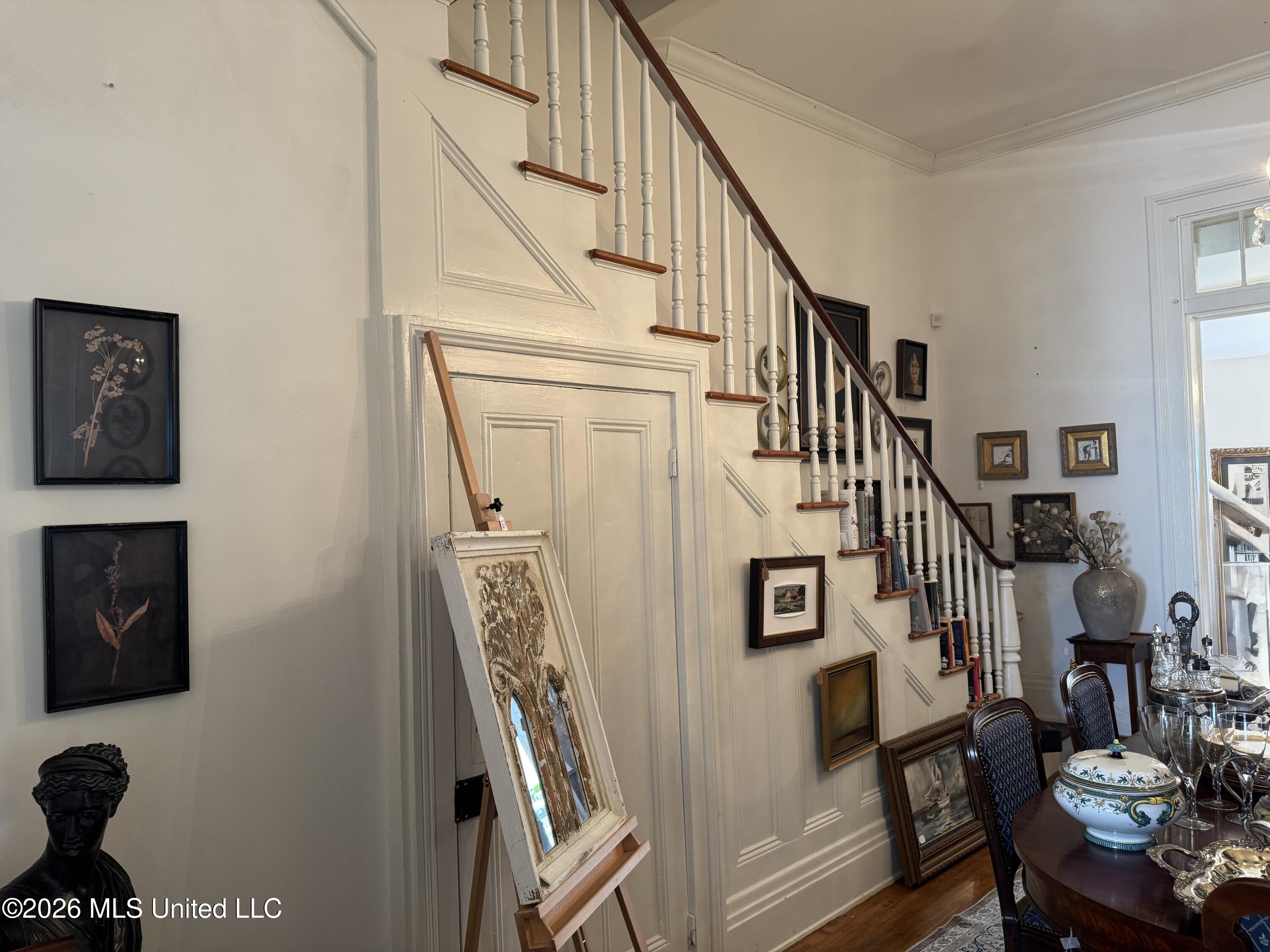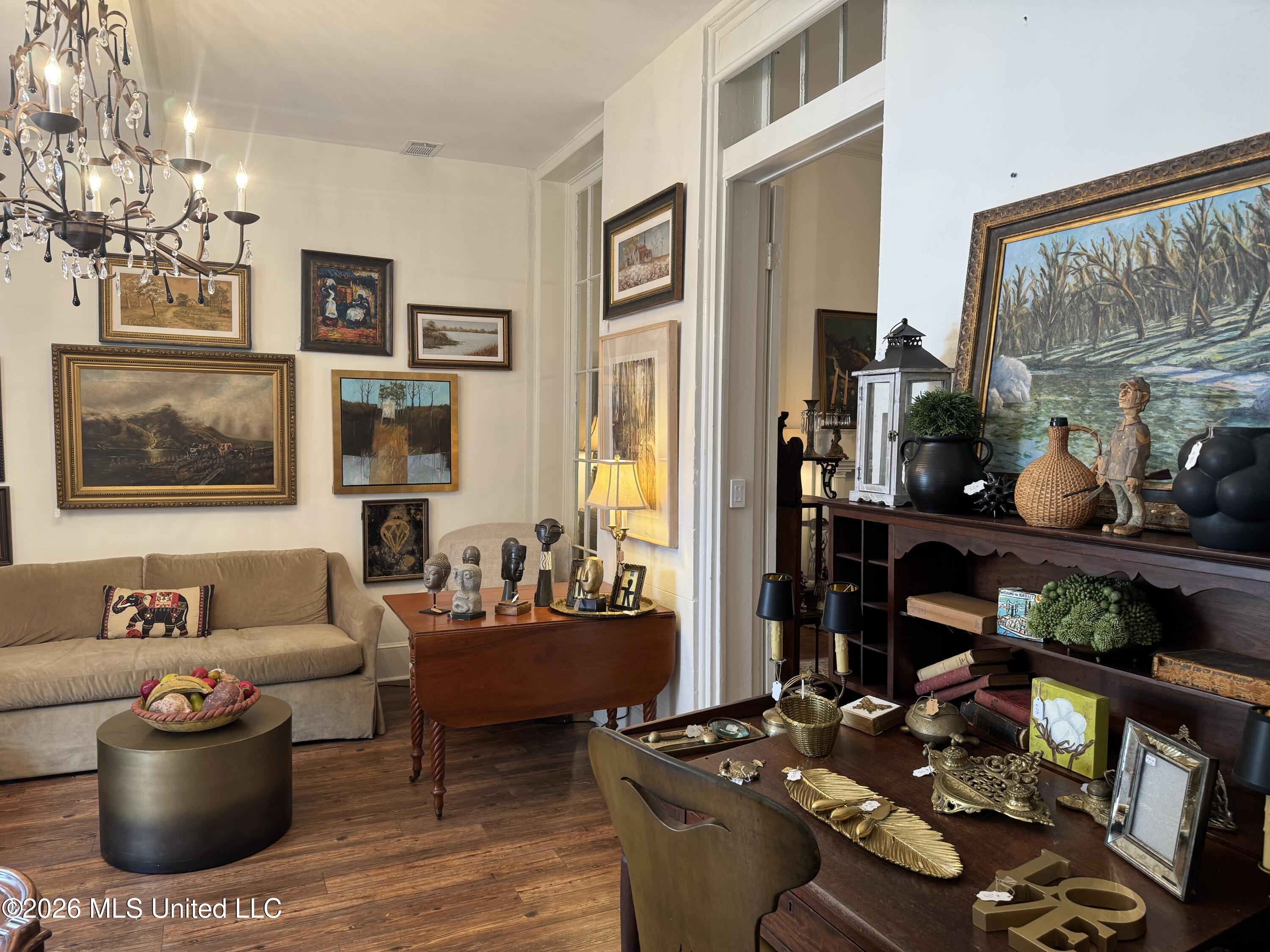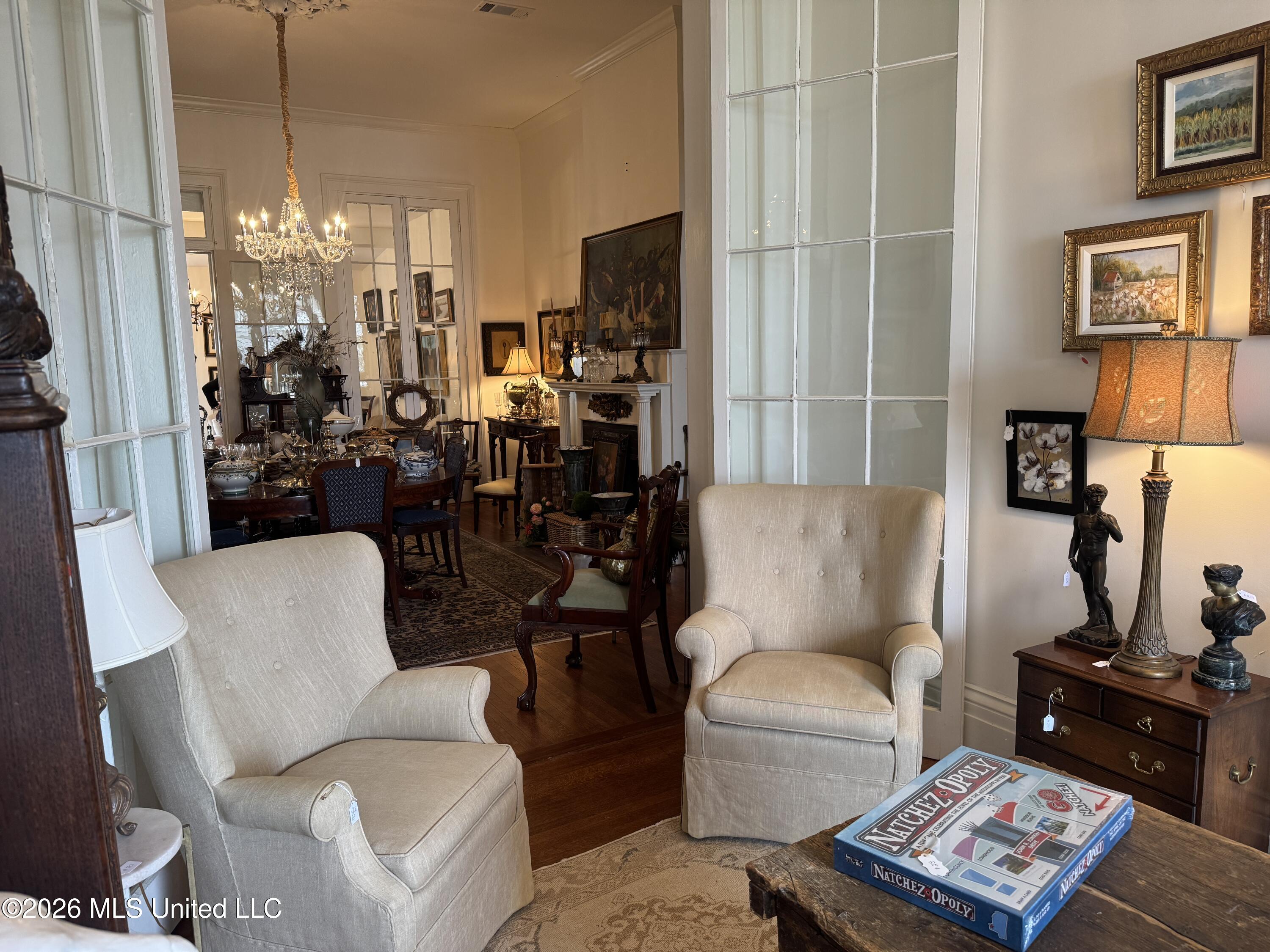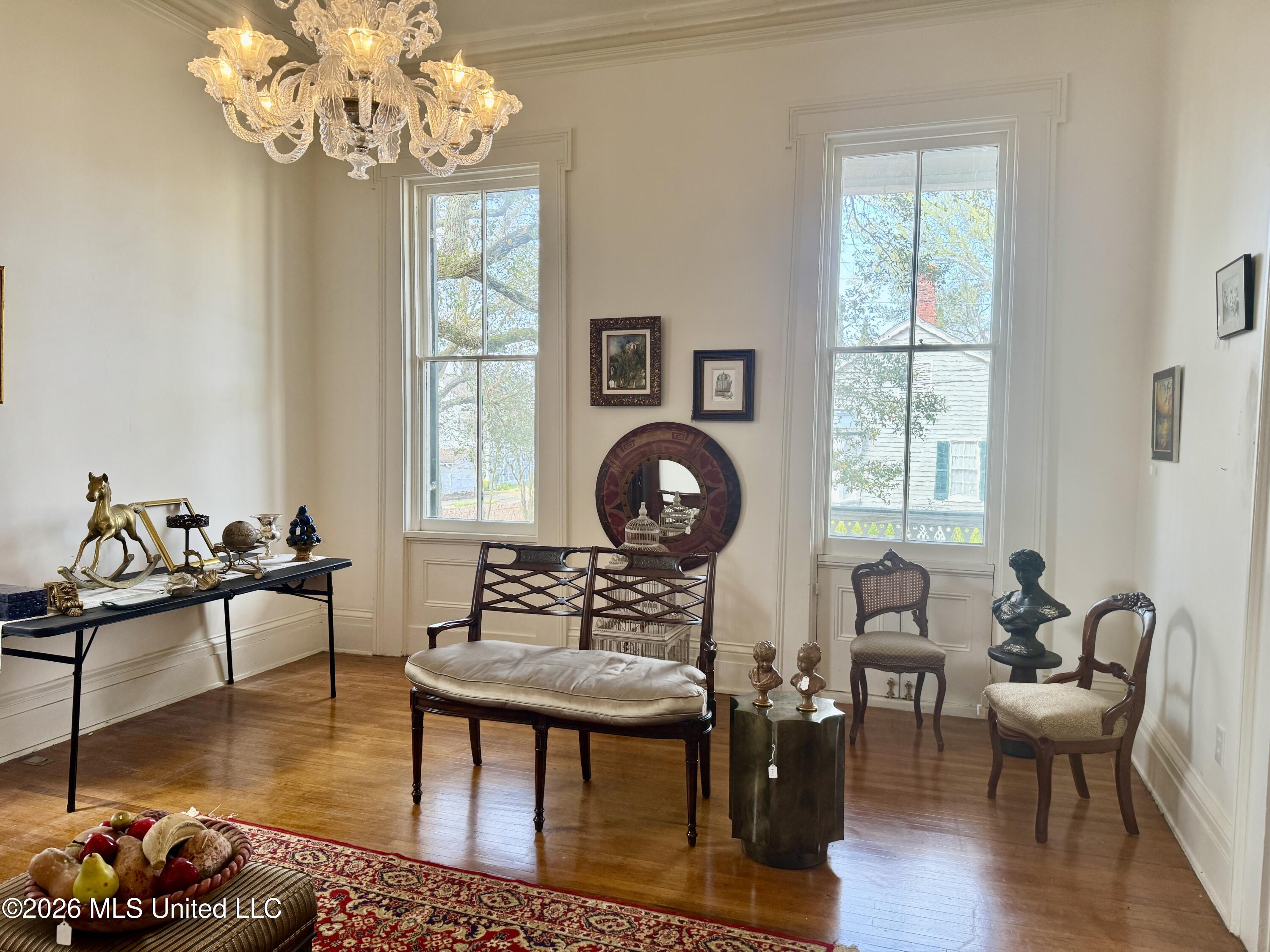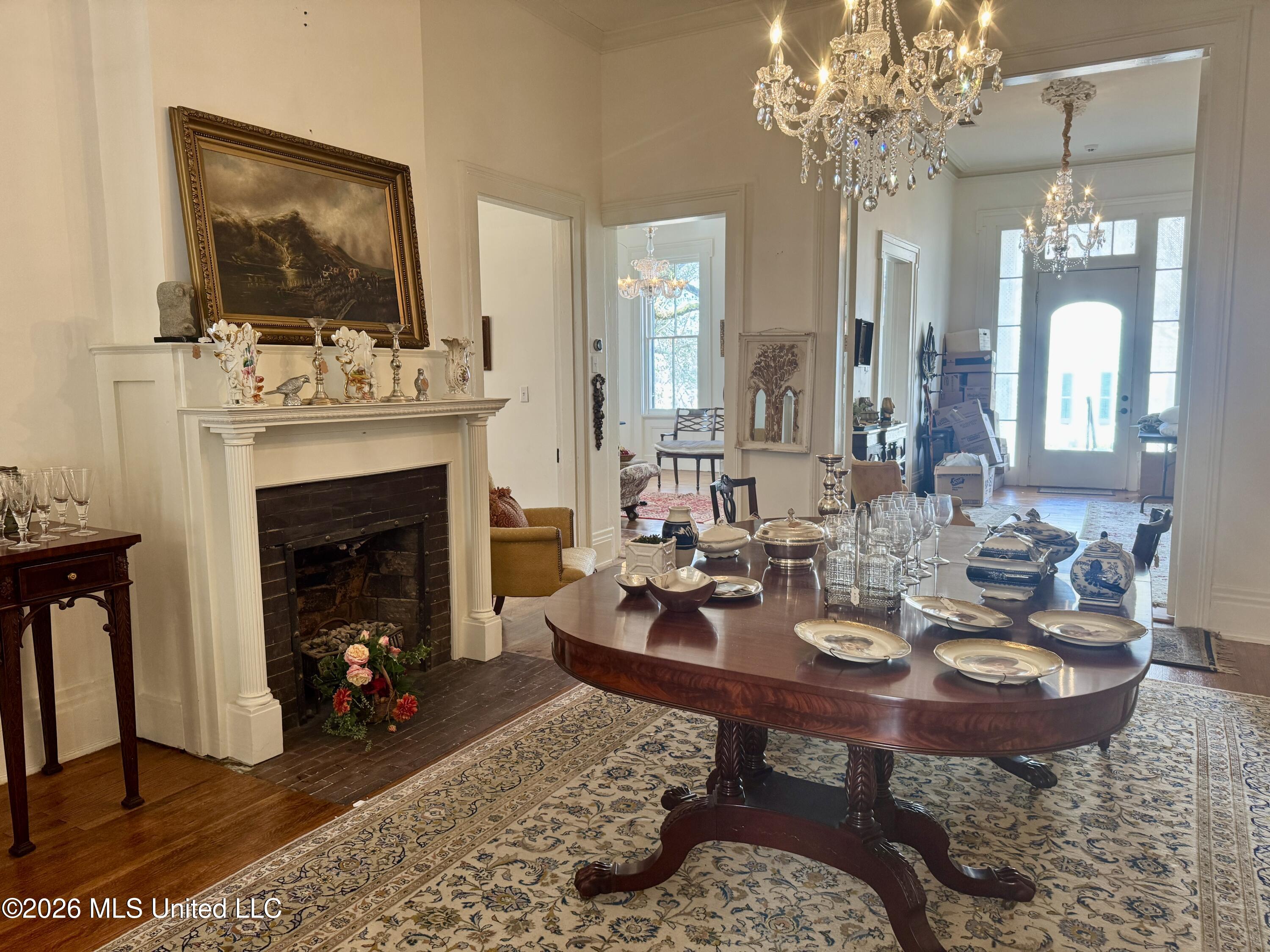 Step back in time while enjoying modern comforts in the beautifully renovated historic home in the heart of historic downtown. This elegant Greek Revival sits on a 160' x 160' lot on a gently elevated hill & offers offstreet parking, mature trees & beautiful landscaping. This charming home blends historic character with thoughtful updates, maintaining the integrity of its design while providing todays conveniences. Inside you will fing sparkling chandeliers, high ceilings, detailed mantels, crown molding, & classic transoms that showcase the craftmanship of the era. The inviting foyer opens to a graceful dining room at the center of the home & a front parlor perfect for entertaining. The spacious chefs kitchen features granite countertops, a center island with a breakfast bar, lazy susan, & plenty of white cabinetry, along with gas stove/oven, dishwsher, built-in microwave, & refrigerator. A breakfast area, half bath, a closet for washer/dryer & a small side sunroom with warm & natural light to the space. Access the beautiful private courtyard from the kitchen & the keeping room/den which is ideal for relaxing or hosting gatherings. The main level includes a guest bedroom with a bath & a connecting sunroom, as well as a primary suite with a large walk in closet with built in shelving. Updated bathrooms include tub & shower for comfort & convenience. Upstairs you will fing an additional bedroom retreat or a perfecft workspace. Outside, enjoy the covered front porch, perfect for taking in the charm of the historic surroundings. The property is accented with iron & picket fencing & the exterior features a blend of brick, stucco & wood construction with a shingle roof & some gutters. This rare historic treasure offers timeless beauty, thoughtful renovations, & a great downtown location.