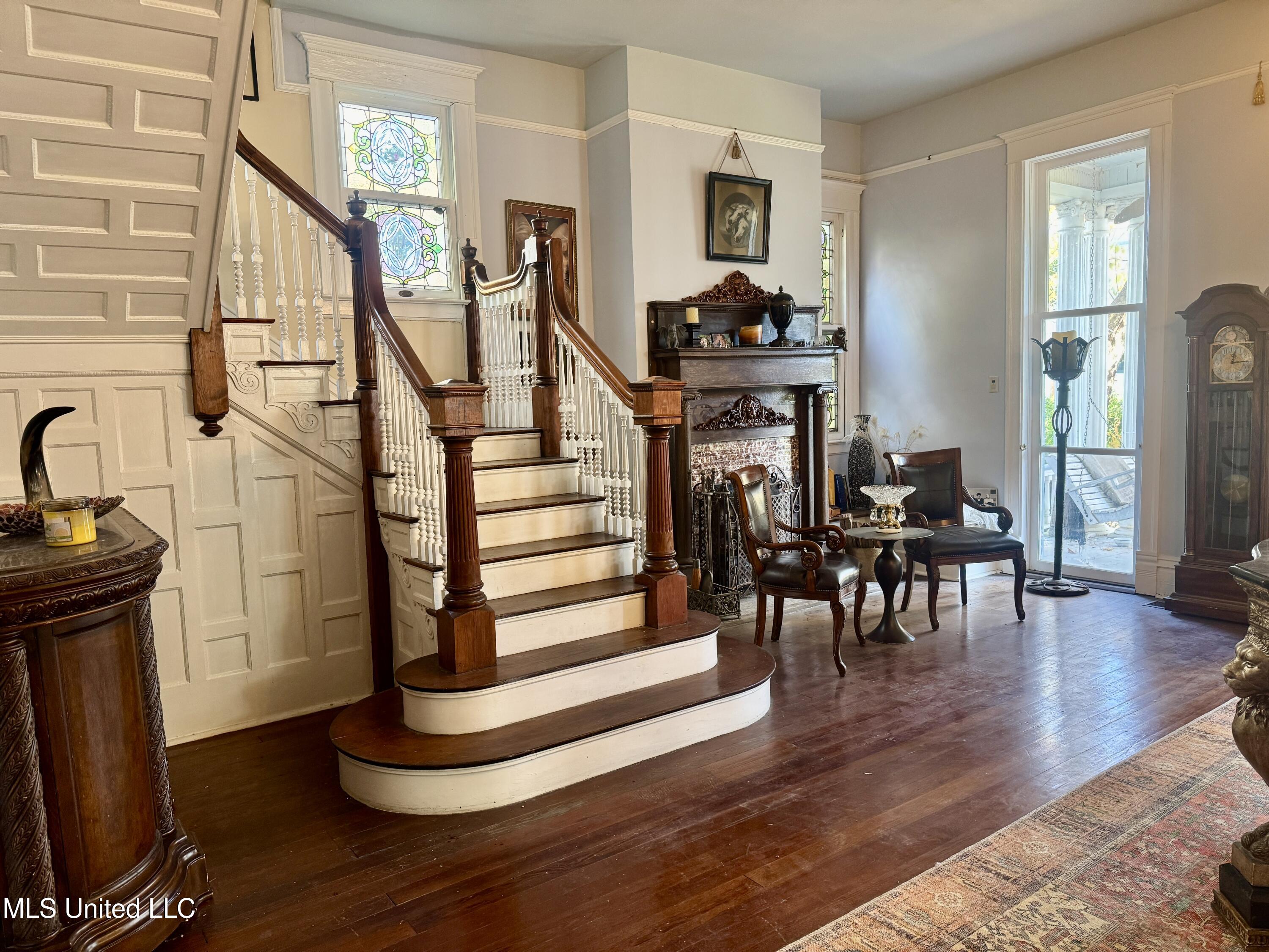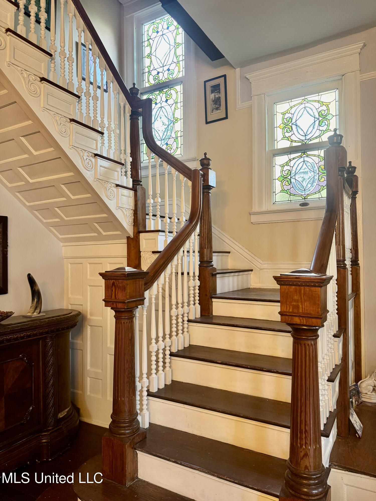 GREAT LOCATION IS THIS TURN OF THE CENTURY HOME THAT HAS LOTS OF AMENITIES. Spacious 5 bedroom, 5 bath home with an inviting entry with a gorgeous stairway accented with stained glass. Beautiful mantels & light fixtures, hardwood floors, detailed woodwork, transoms, clawfoot tub and much more. A study that could easily be a downstairs bedroom with a full bath. Large dining room with slide pocket doors. Kitchen with ceramic tile countertops, beadboard ceiling & walls, gas stove/oven & dishwasher & two refrigerators. Two water heaters & three HVAC units. Covered front porch with columns & swing. This has been a B&B in the past & could possible be again with the proper approval. In walking distance to the Mississippi River, restaurants, shopping & all Downtown events. All measurements & dates noted are estimated & buyer is welcome to verufy.