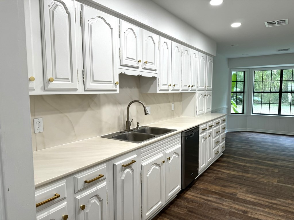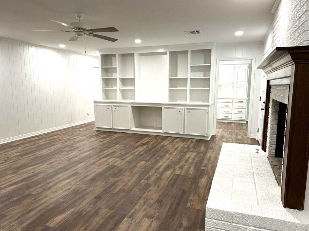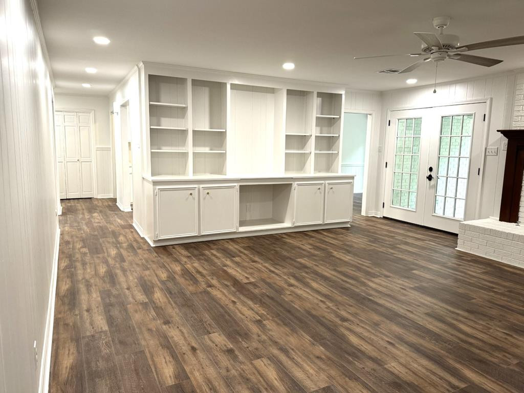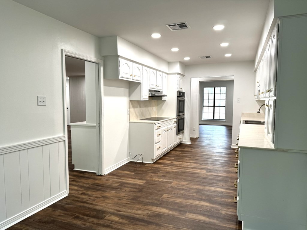 MOVE RIGHT IN THIS ONE LEVEL REFURBISHED BRICK HOME ON A CUL-DE-SAC. Located in Village Green Subdivision & in close proximity to grocery stores, hospital & shopping centers. Spacious 4 bedroom (split master) & 3 full baths (ALL UPDATED). New flooring throughout & fresh paint. A few amenities are a large dining/living room, nice den with gas log fireplace, built ins & french doors that open on to a covered patio. The cook will adore the kitchen with a new stove top, double ovens, new vent hood & plenty of cabinets & counter space. You will enjoy sipping coffee at the breakfast table looking out of the bay window to a very private backyard. Lots of closet space including walk ins and a large pantry area. The laundry room is complete with a laundry sink, granite countertops, storage cabinets & closet. Two central heat/air units (one recently replaced) & two water heaters. Two car covered parking & utility room. Extra large lot, Call listing agent for more information. NONE