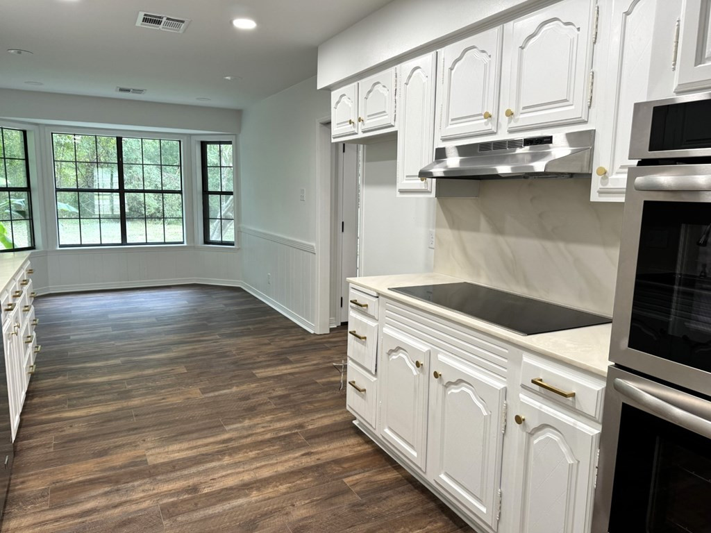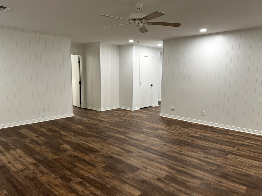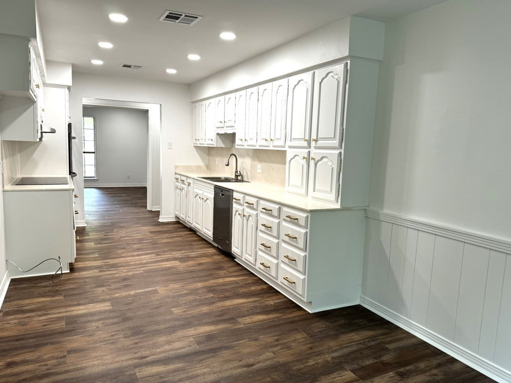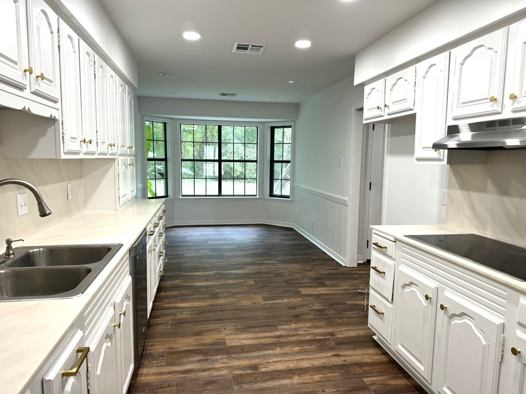 MOVE RIGHT IN THIS ONE LEVEL REFURBISHED BRICK HOME ON A CUL-DE-SAC. Located in Village Green Subdivision & in close proximity to grocery stores, hospital & shopping centers. Spacious 4 bedroom (split master) & 3 full baths (ALL UPDATED). New flooring throughout & fresh paint. A few amenities are a large dining/living room, nice den with gas log fireplace, built ins & french doors that open on to a covered patio. The cook will adore the kitchen with a new stove top, double ovens, new vent hood & plenty of cabinets & counter space. You will enjoy sipping coffee at the breakfast table looking out of the bay window to a very private backyard. Lots of closet space including walk ins and a large pantry area. The laundry room is complete with a laundry sink, granite countertops, storage cabinets & closet. Two central heat/air units (one recently replaced) & two water heaters. Two car covered parking & utility room. Extra large lot, Call listing agent for more information. NONE